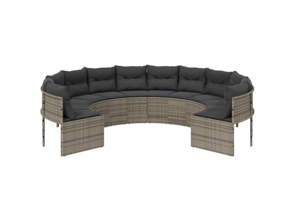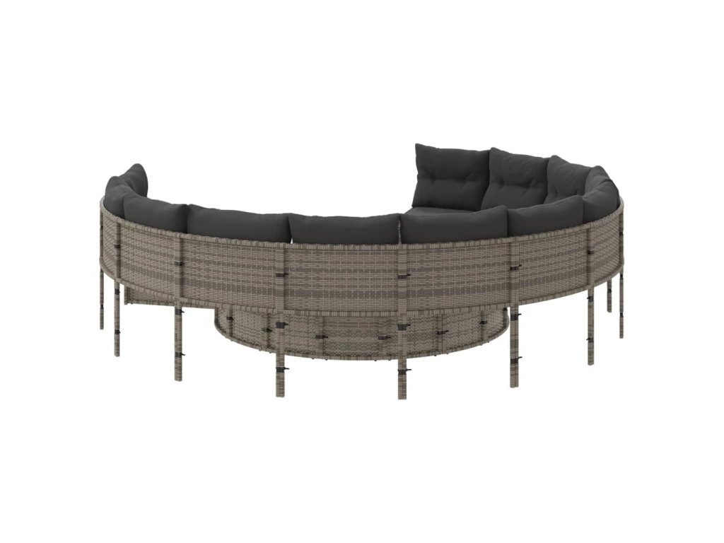 Multidom Záhradná pohovka s vankúšmi okrúhla sivá polyratanová