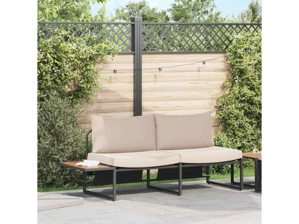 Táto moderná záhradná pohovka je štýlové sedenie navrhnuté tak, aby zlepšilo vaše zážitky na záhrade alebo terase. S myšlienkou na jednoduchosť a funkčnosť ponúka čisté línie, žiadne zbytočnosti a elegantný čierny povrch pre trendy vzhľad. Dvojmiestne usporiadanie poskytuje veľa miesta na spoločenské stretnutia alebo pohodlné relaxovanie, takže je super doplnkom pre tých, ktorí radi zabávajú alebo oddychujú vonku. Je nielen vizuálne atraktívna, ale aj praktická pre vonkajšie prostredie.