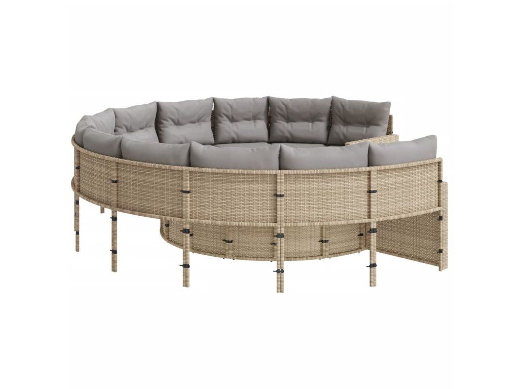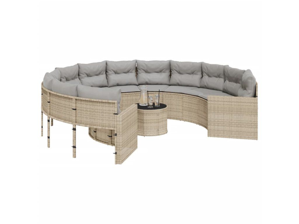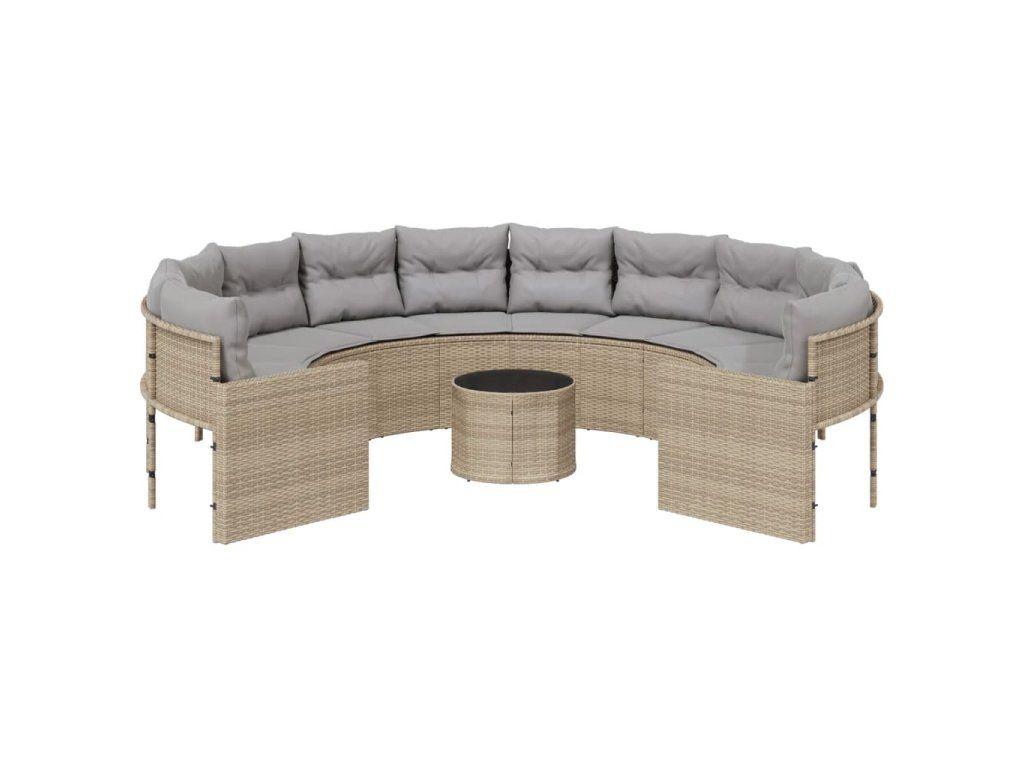 Multidom Záhradná pohovka so stolíkom, vankúšmi okrúhla béžová polyratan