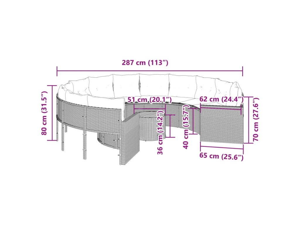 Táto okrúhla záhradná pohovka je dokonalým doplnkom na vašu záhradu, terasu alebo verandu, a poskytuje pohodlný a príjemný priestor na rozhovory s rodinou a priateľmi, alebo jednoducho na relaxáciu a užívanie si pobytu vonku.