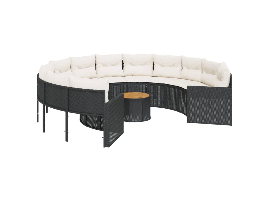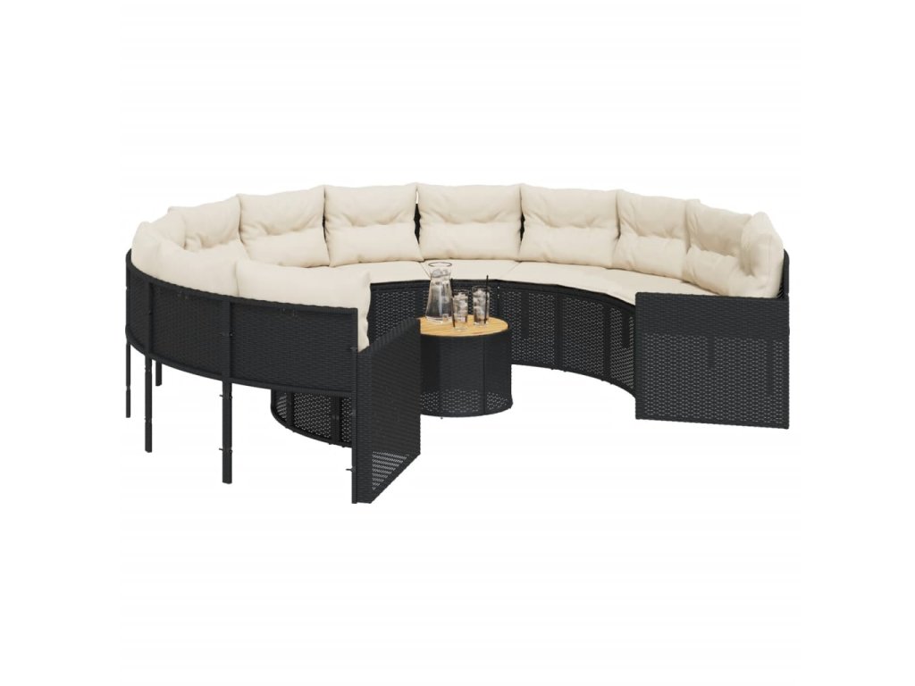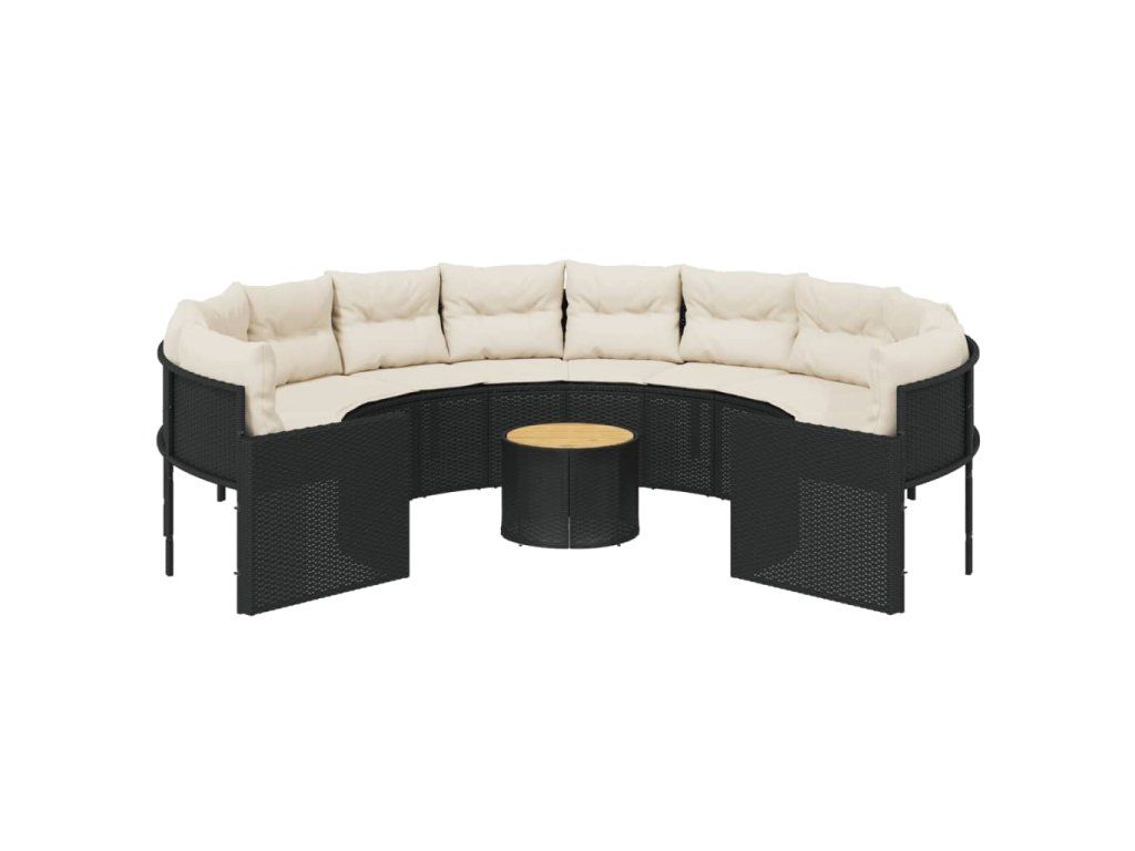 Multidom Záhradná pohovka so stolíkom, vankúšmi okrúhla čierna polyratan