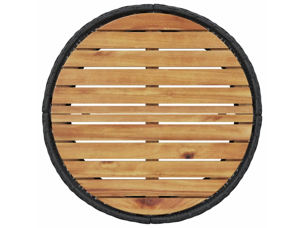 - Materiál: PE (polyetylén) ratan, oceľ s práškovou povrchovou úpravou, akáciový masív s prírodným olejovým náterom
