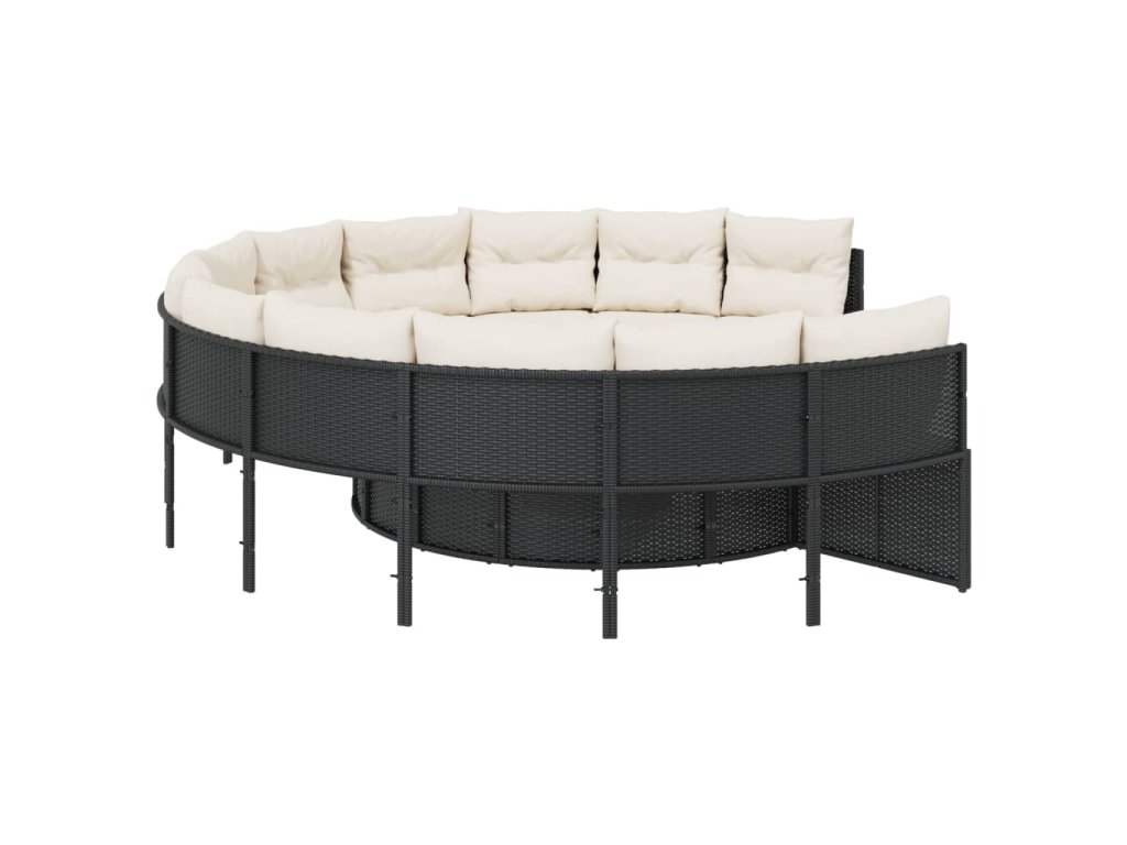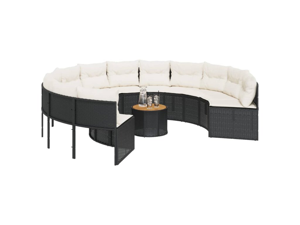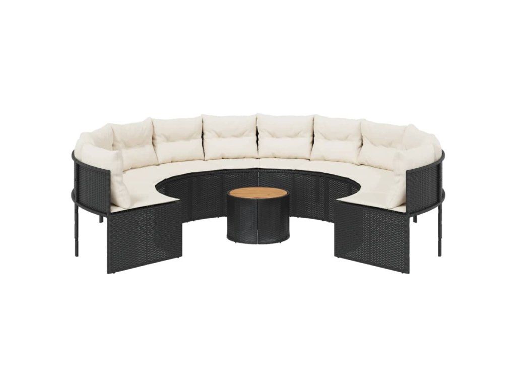 Multidom Záhradná pohovka so stolíkom, vankúšmi okrúhla čierna polyratan