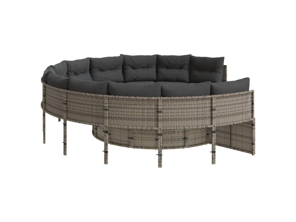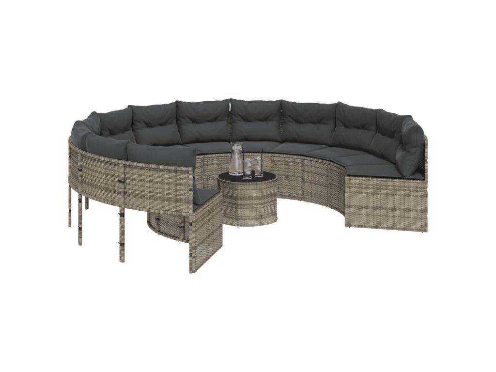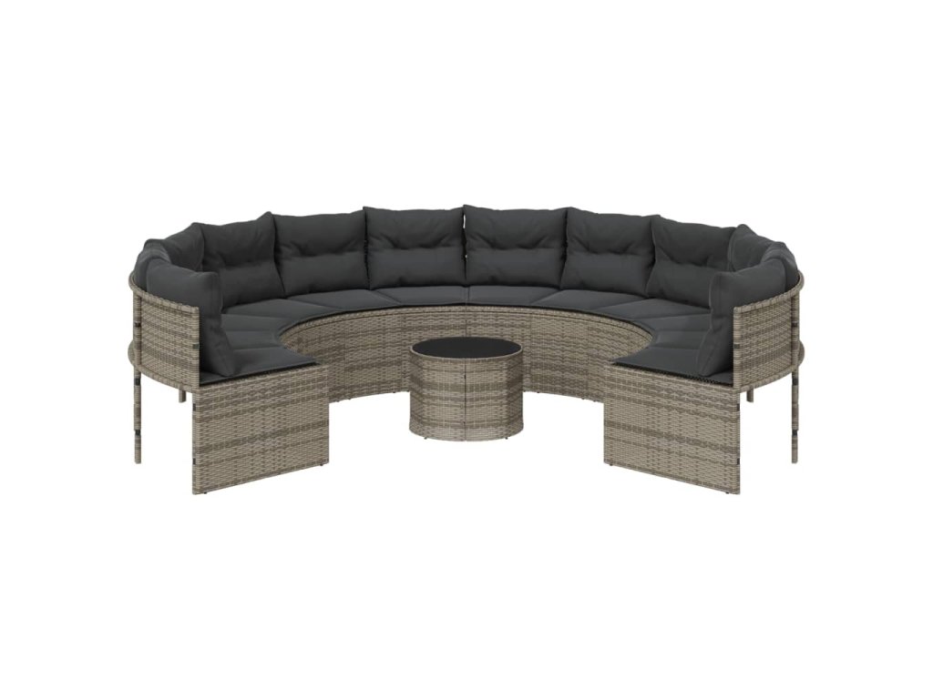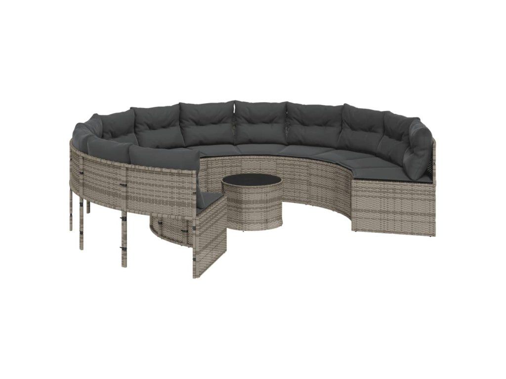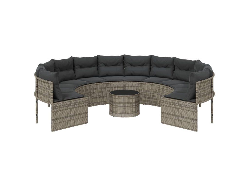 Multidom Záhradná pohovka so stolíkom, vankúšmi okrúhla sivá polyratan