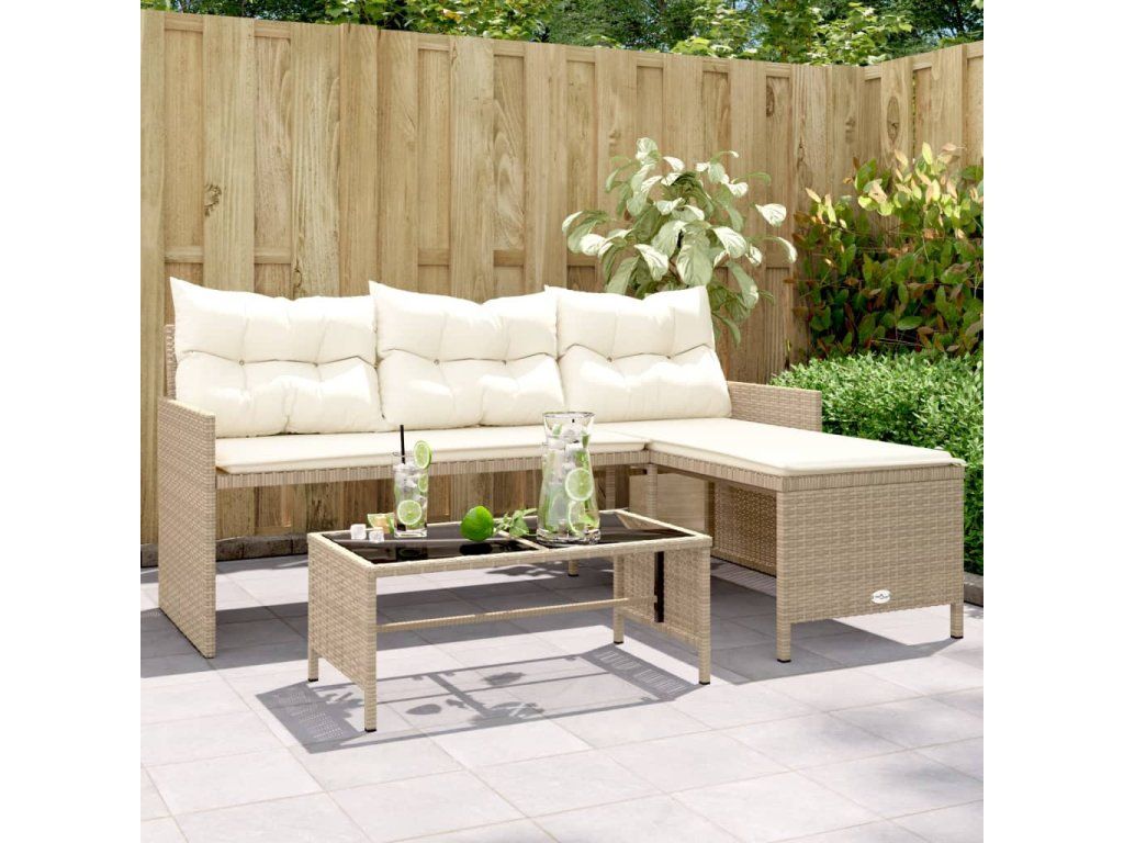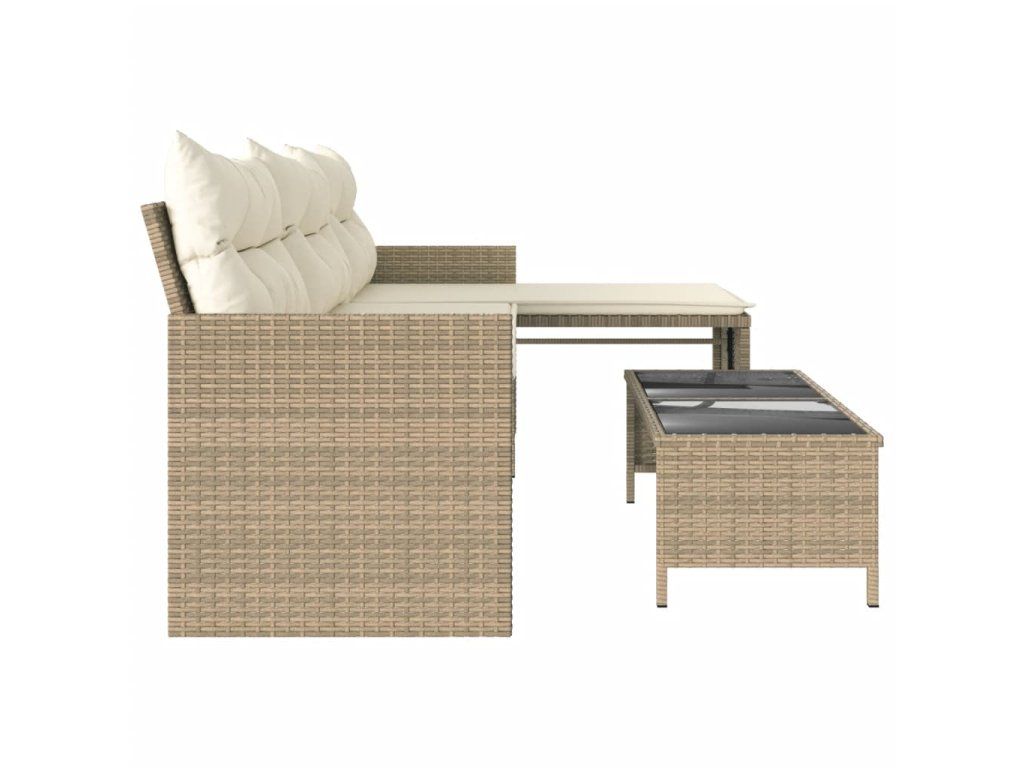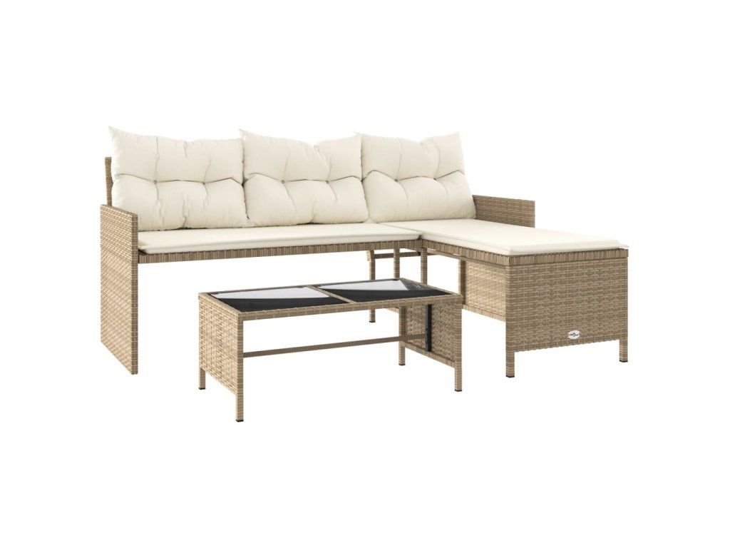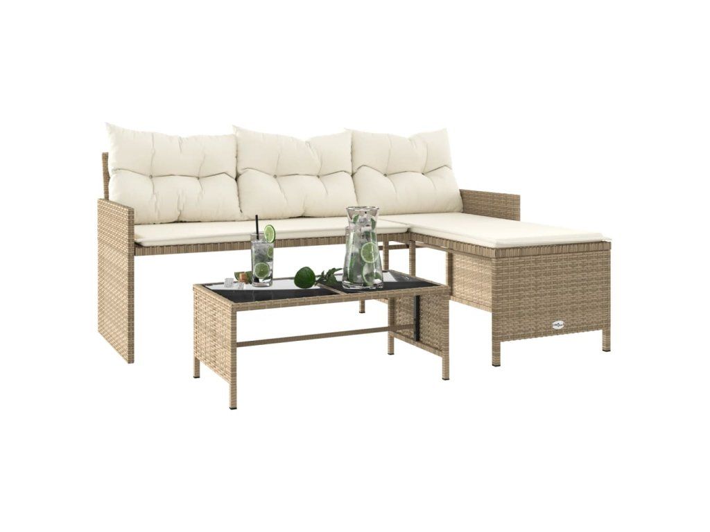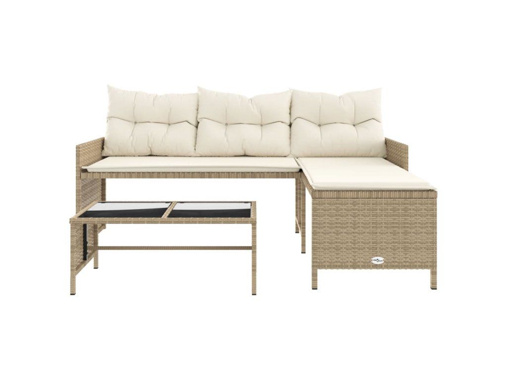 Multidom Záhradná pohovka so stolíkom a vankúšmi tvar L béžová polyratan