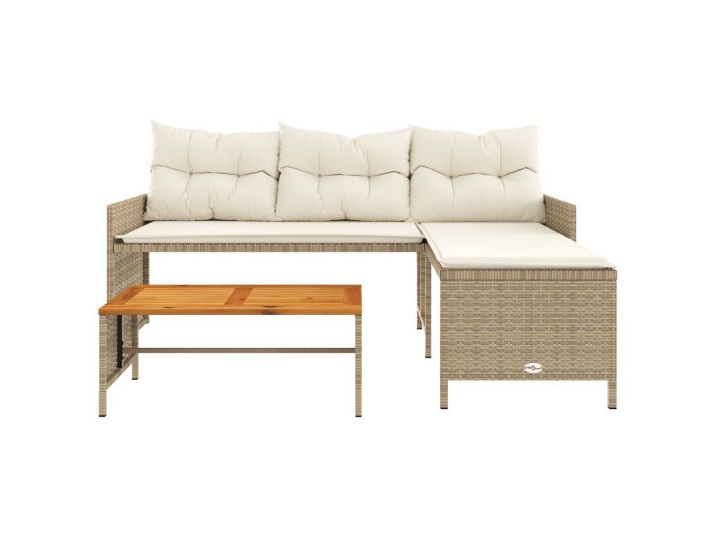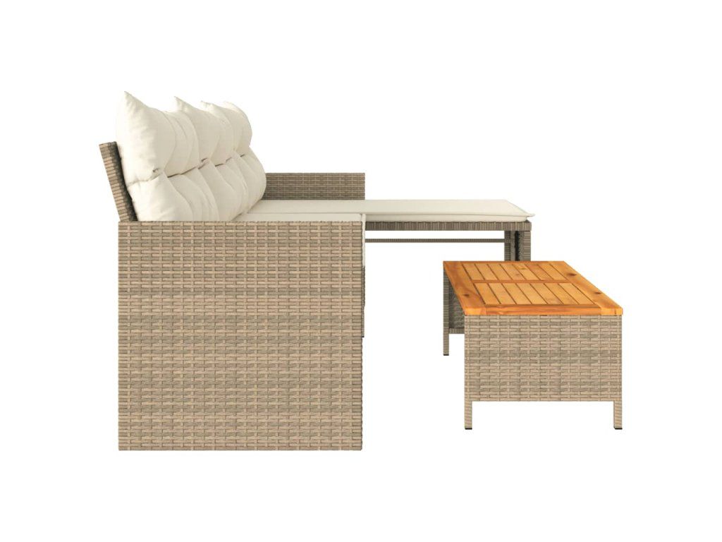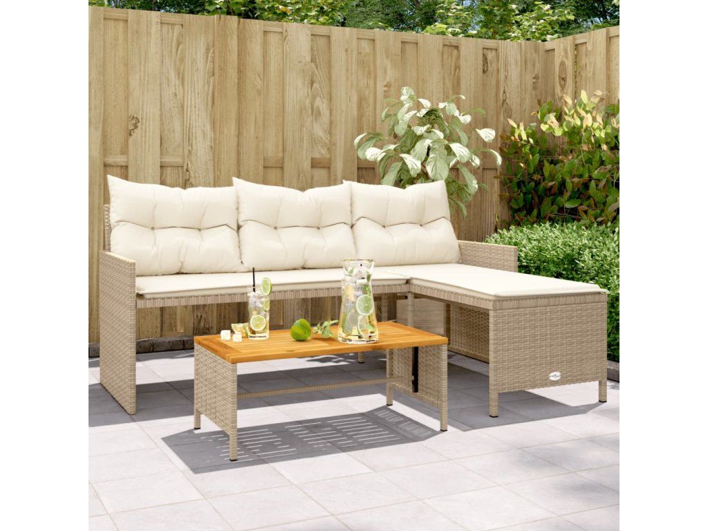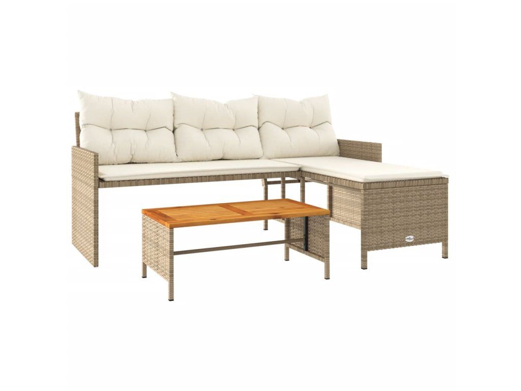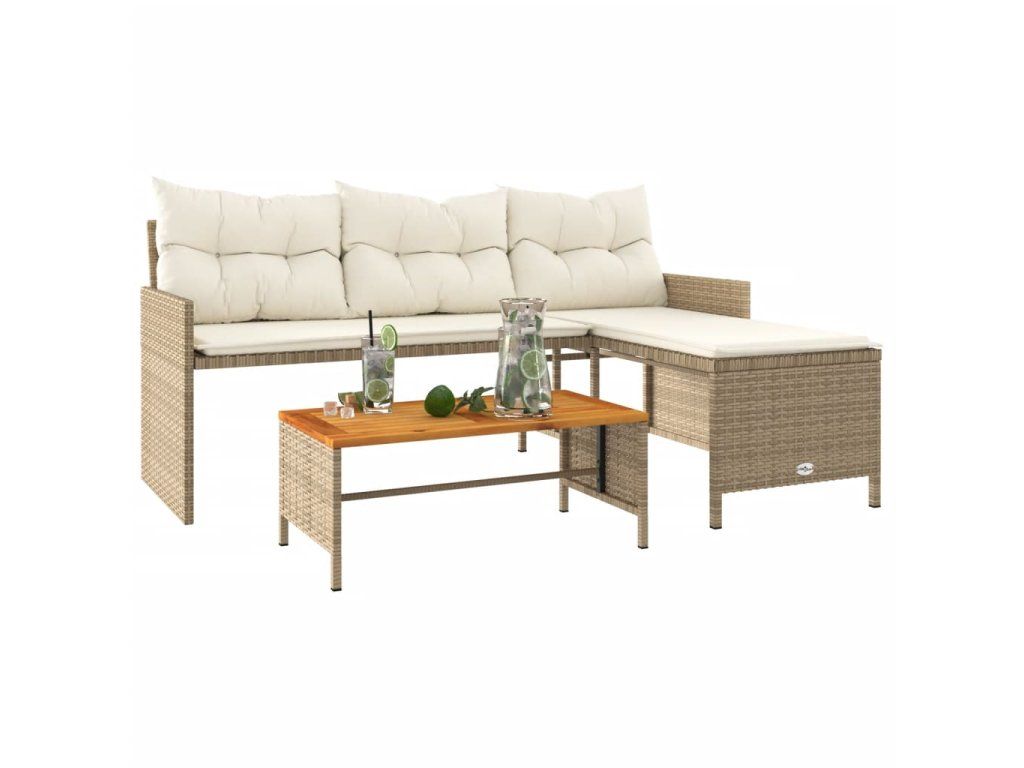 Multidom Záhradná pohovka so stolíkom a vankúšmi tvar L béžová polyratan