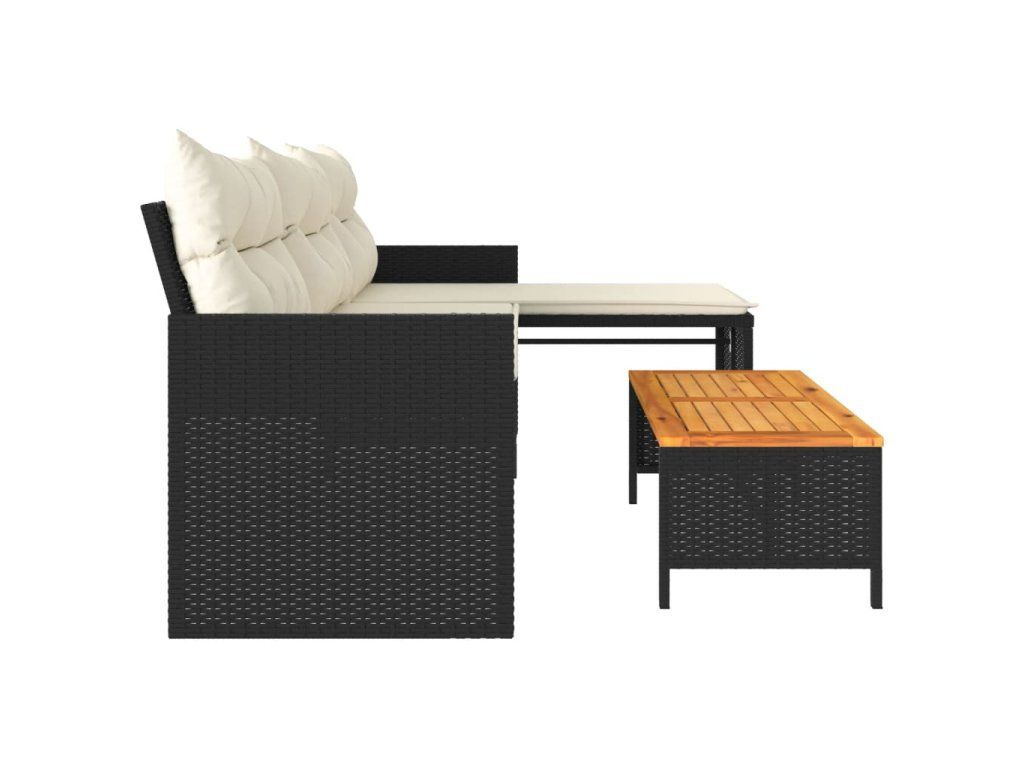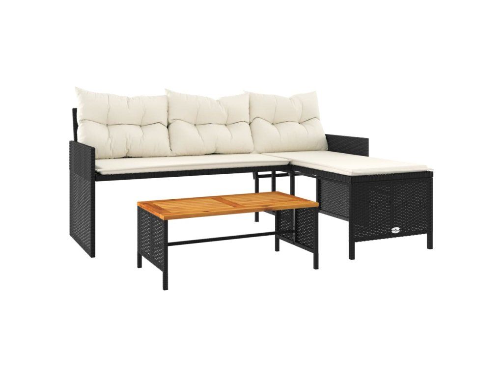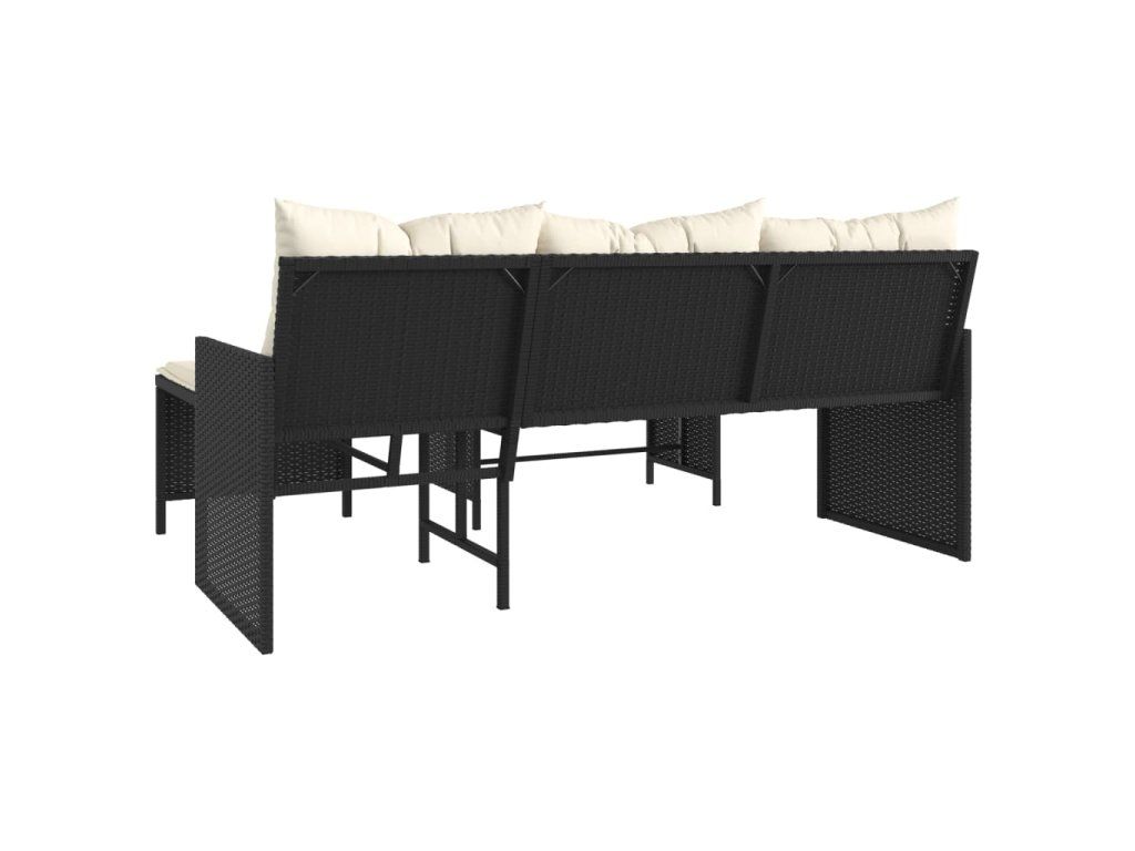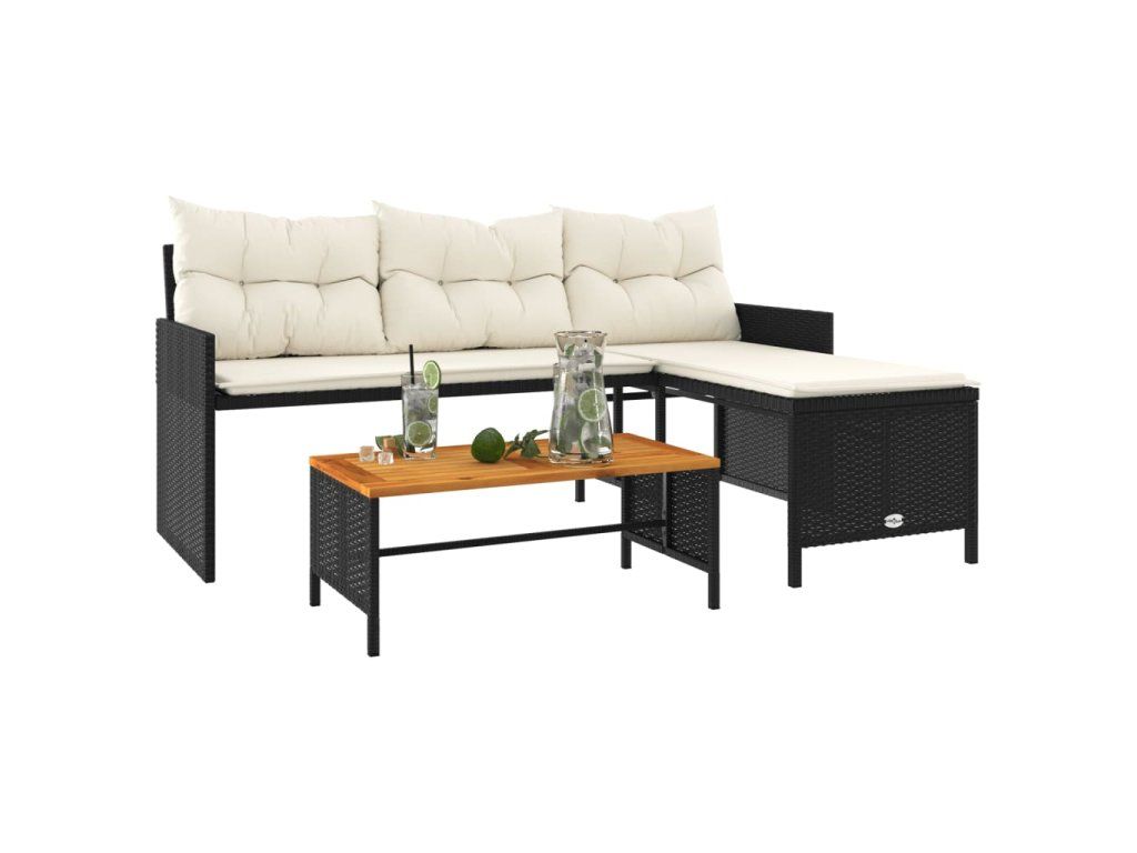 Multidom Záhradná pohovka so stolíkom a vankúšmi tvar L čierna polyratan