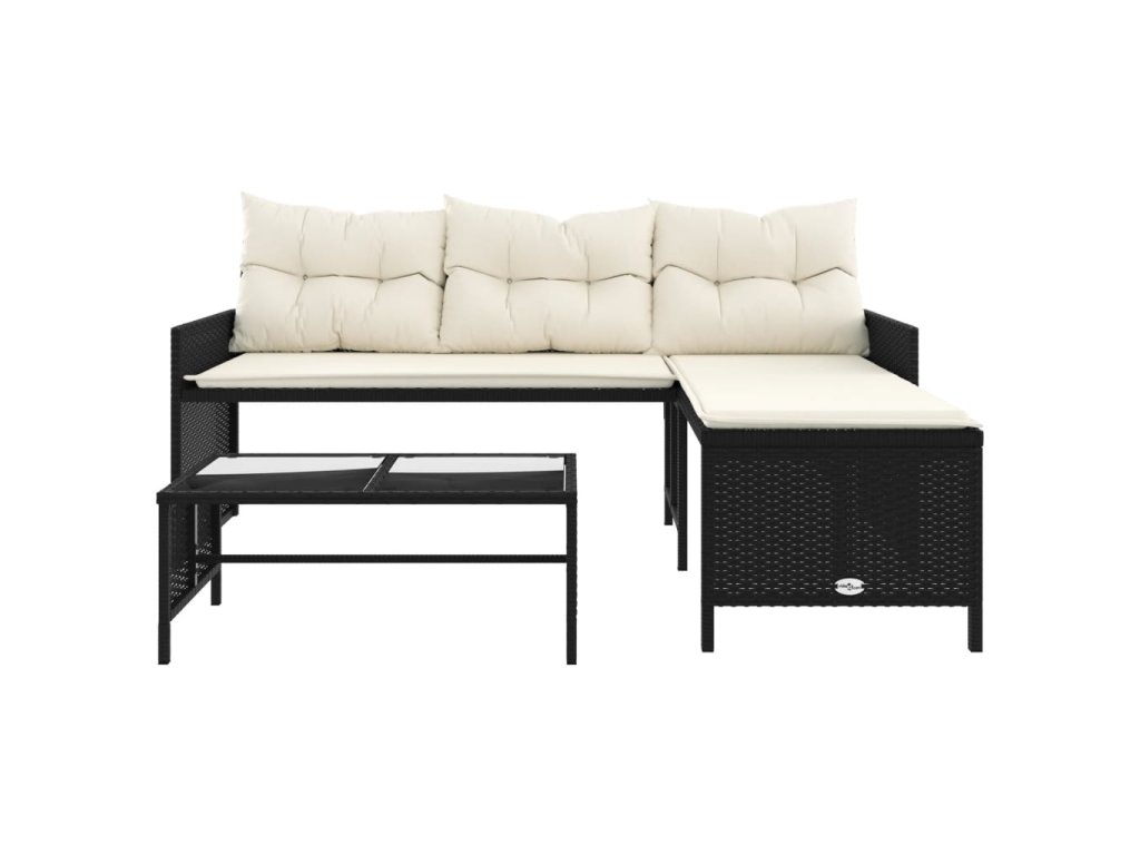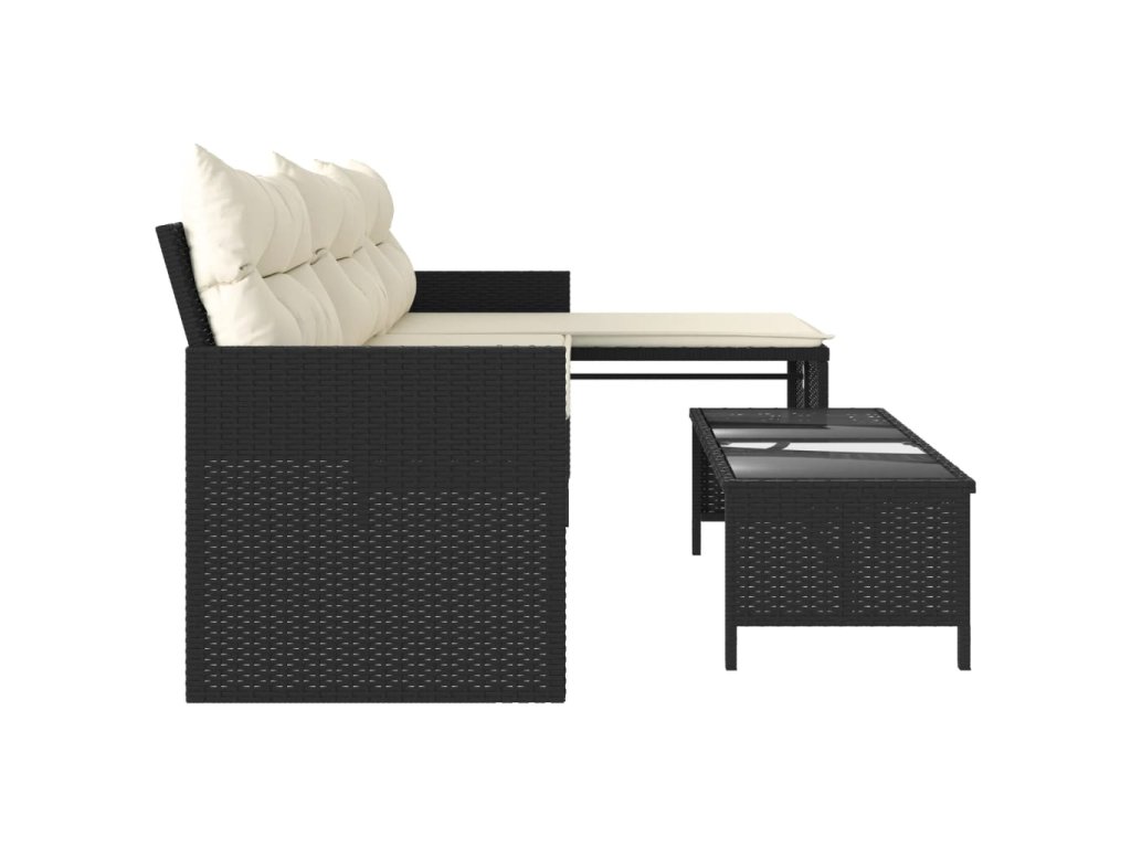 Multidom Záhradná pohovka so stolíkom a vankúšmi tvar L čierna polyratan