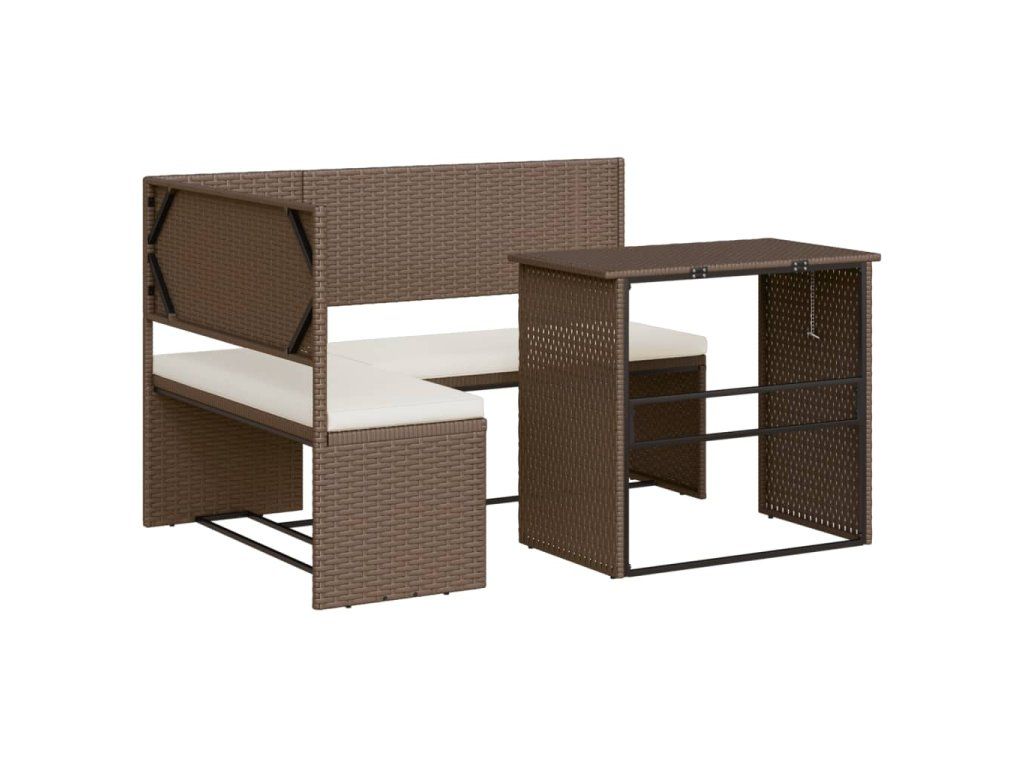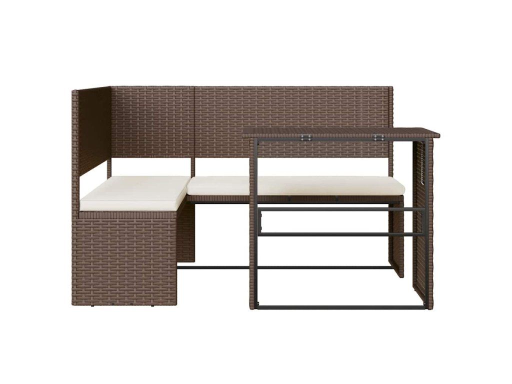 Multidom Záhradná pohovka so stolíkom a vankúšmi tvar L hnedá polyratan