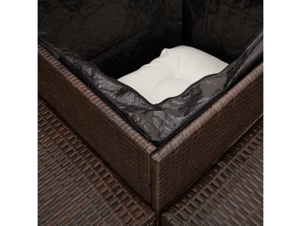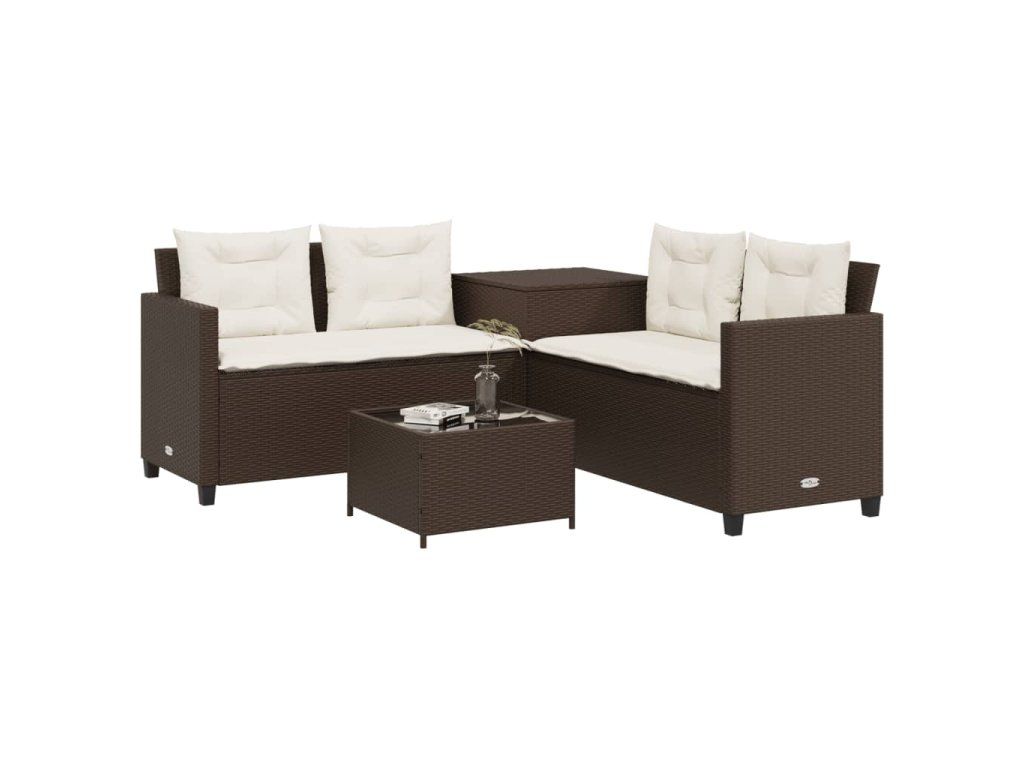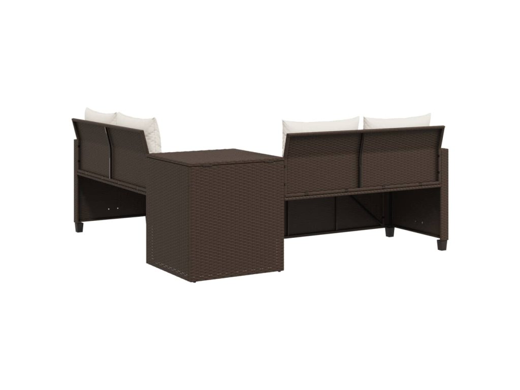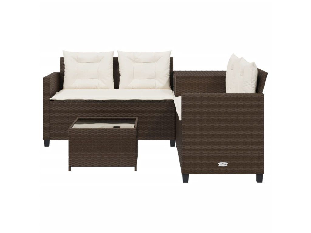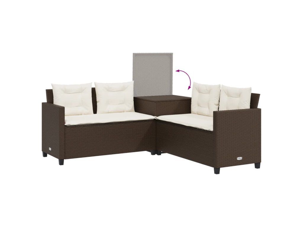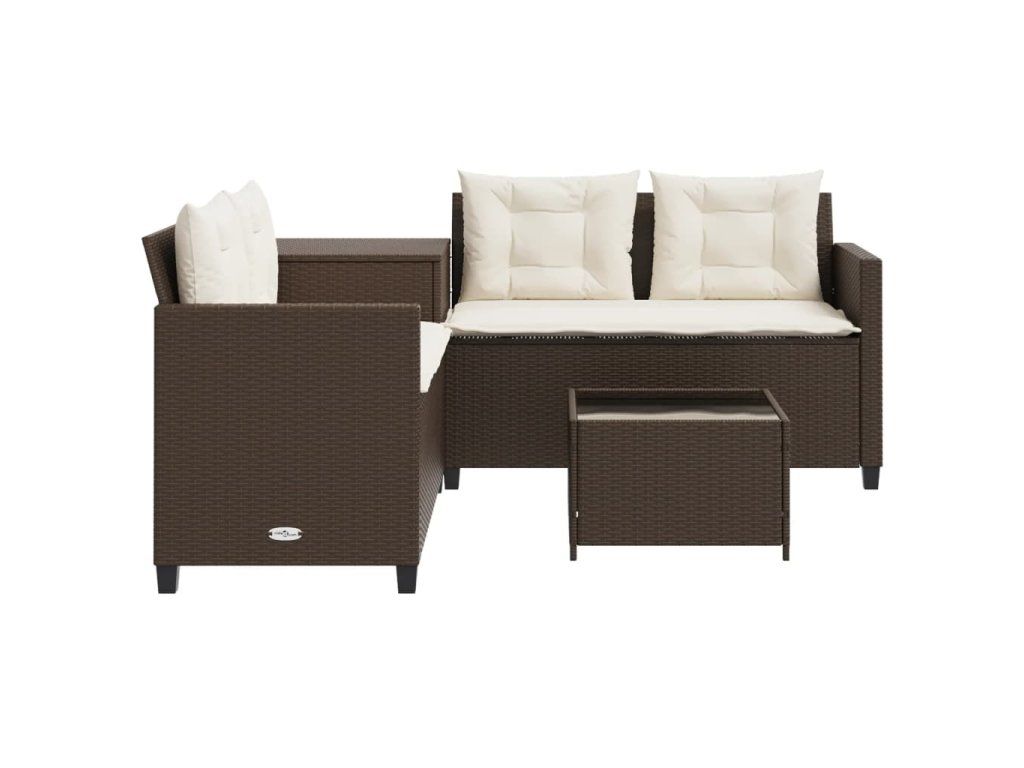Multidom Záhradná pohovka so stolíkom a vankúšmi tvar L hnedá polyratan