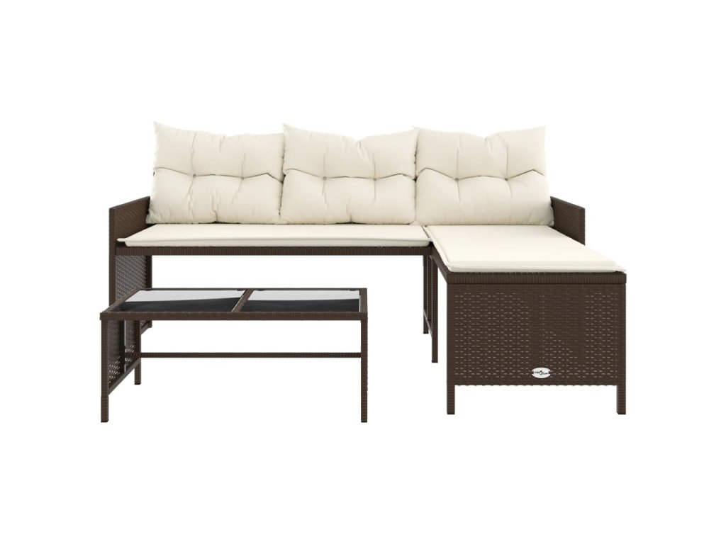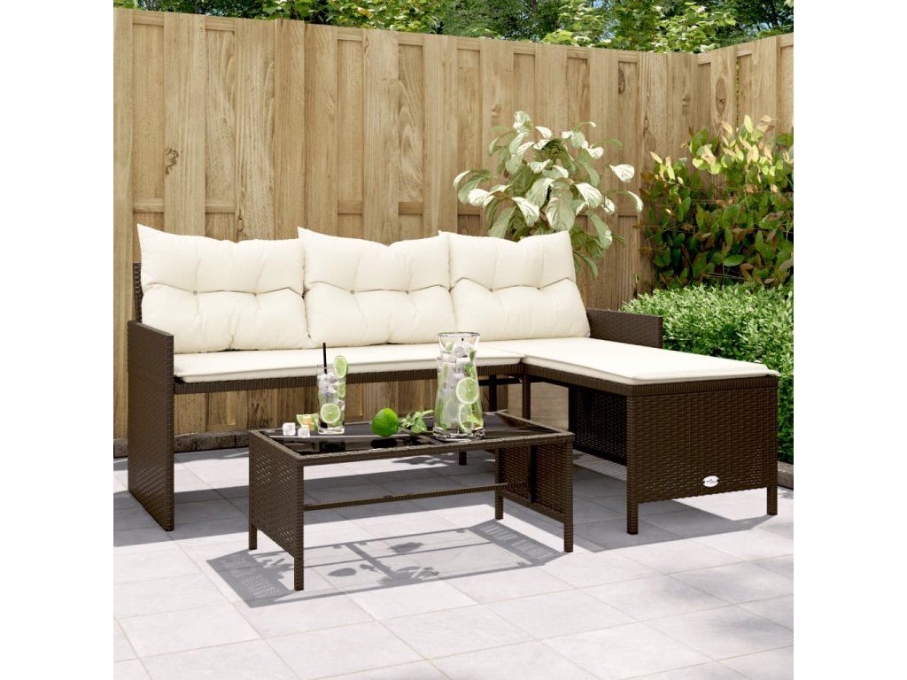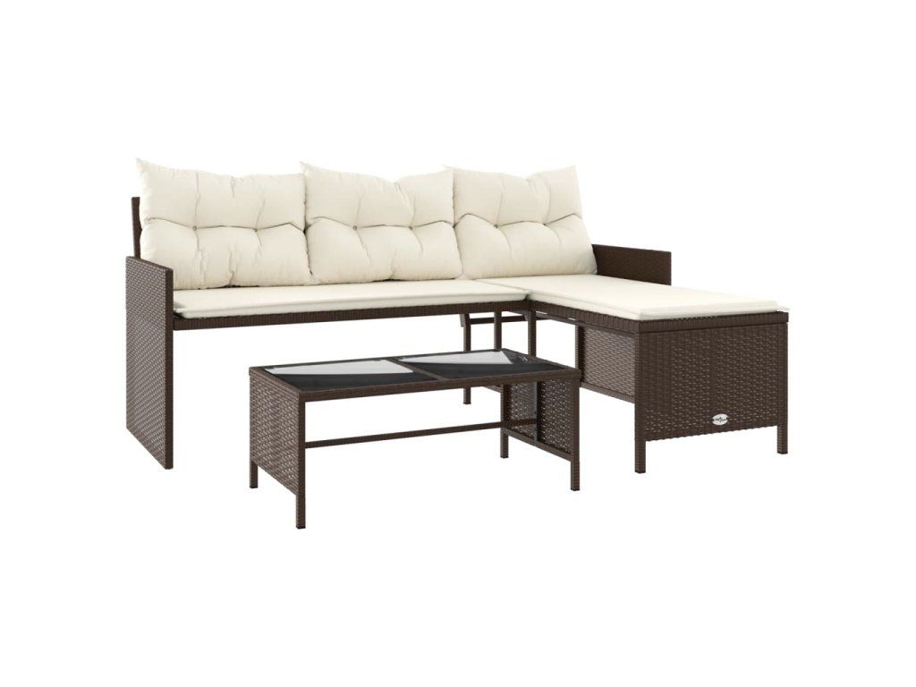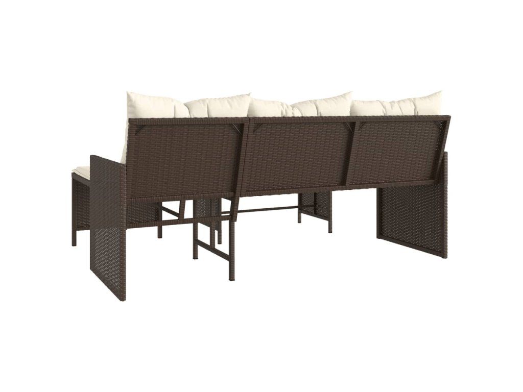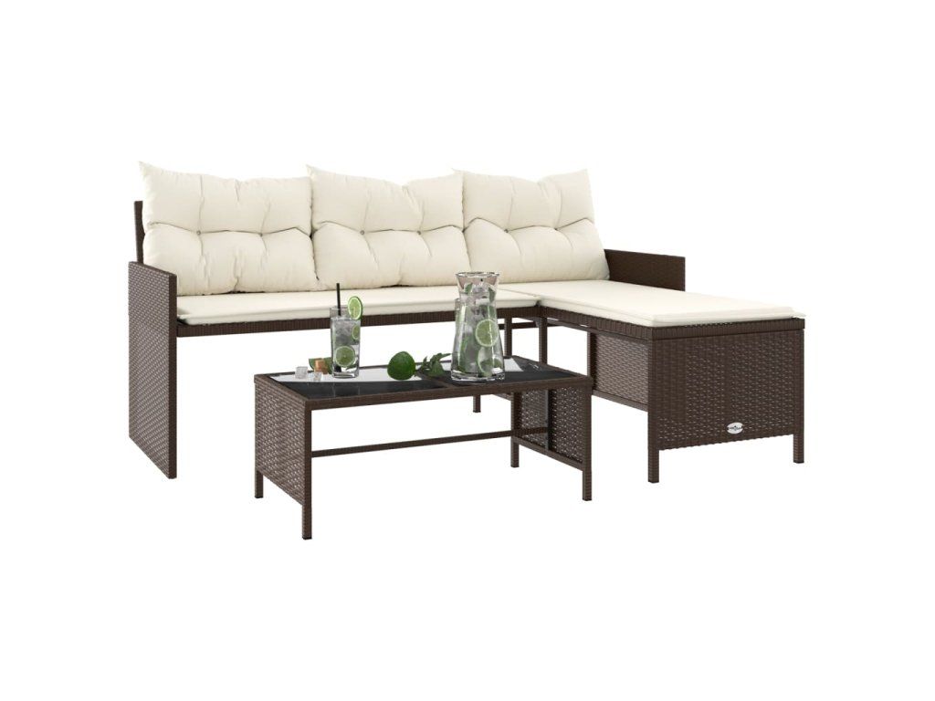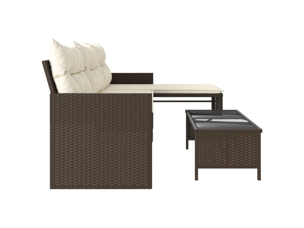 Multidom Záhradná pohovka so stolíkom a vankúšmi tvar L hnedá polyratan