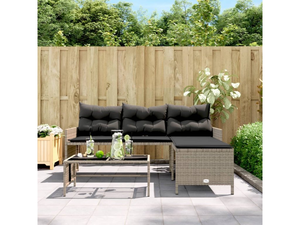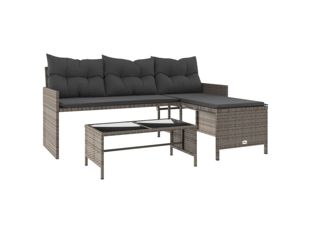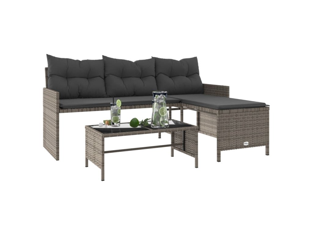 Multidom Záhradná pohovka so stolíkom a vankúšmi tvar L sivá polyratan
