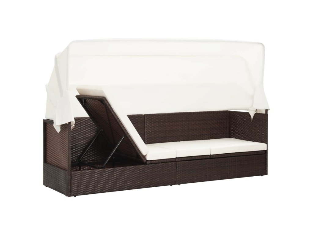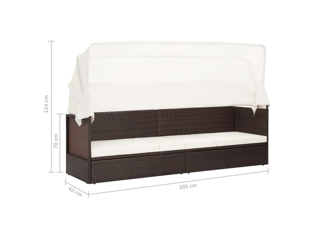 Multidom Záhradná pohovka so strieškou hnedá polyratanová