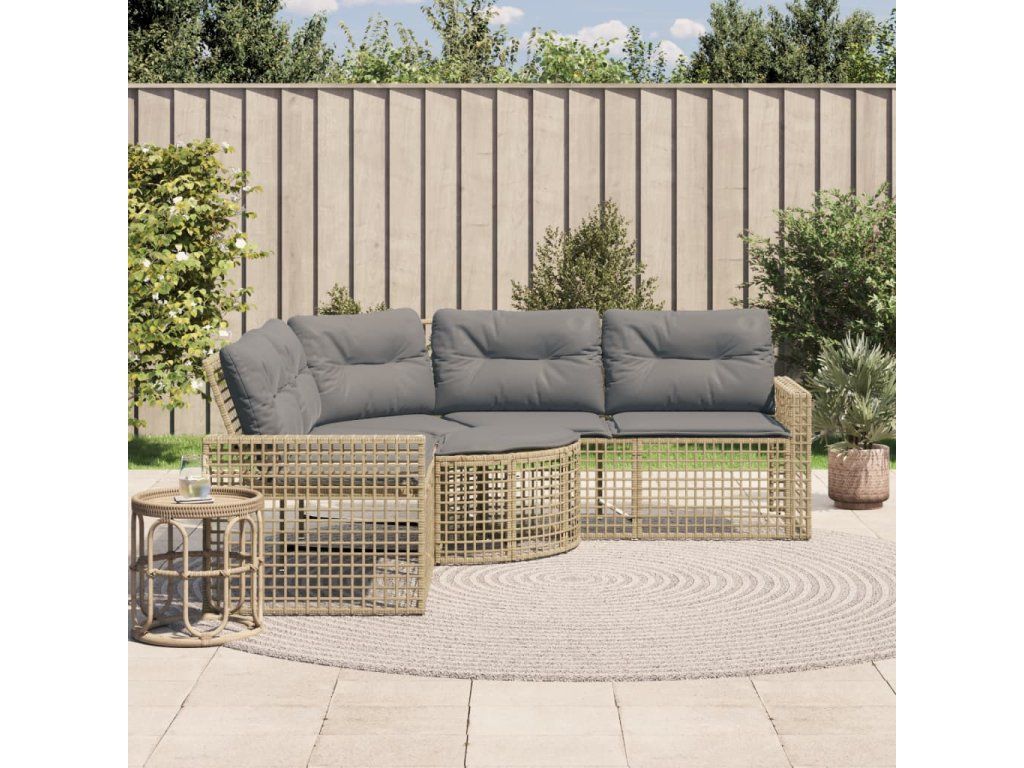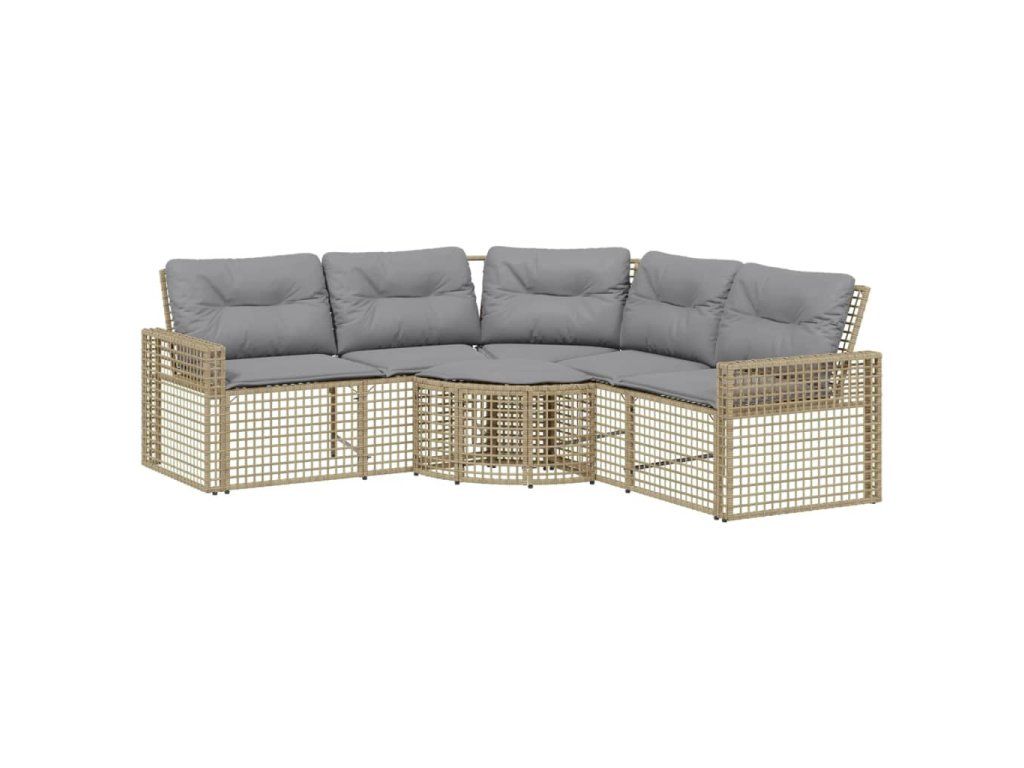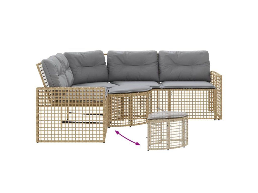 Multidom Záhradná pohovka so vankúšmi a podnožkou tvarL béžová polyratan