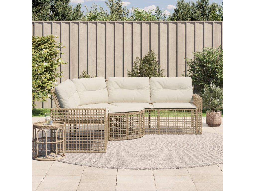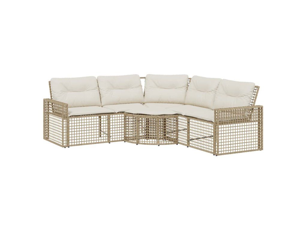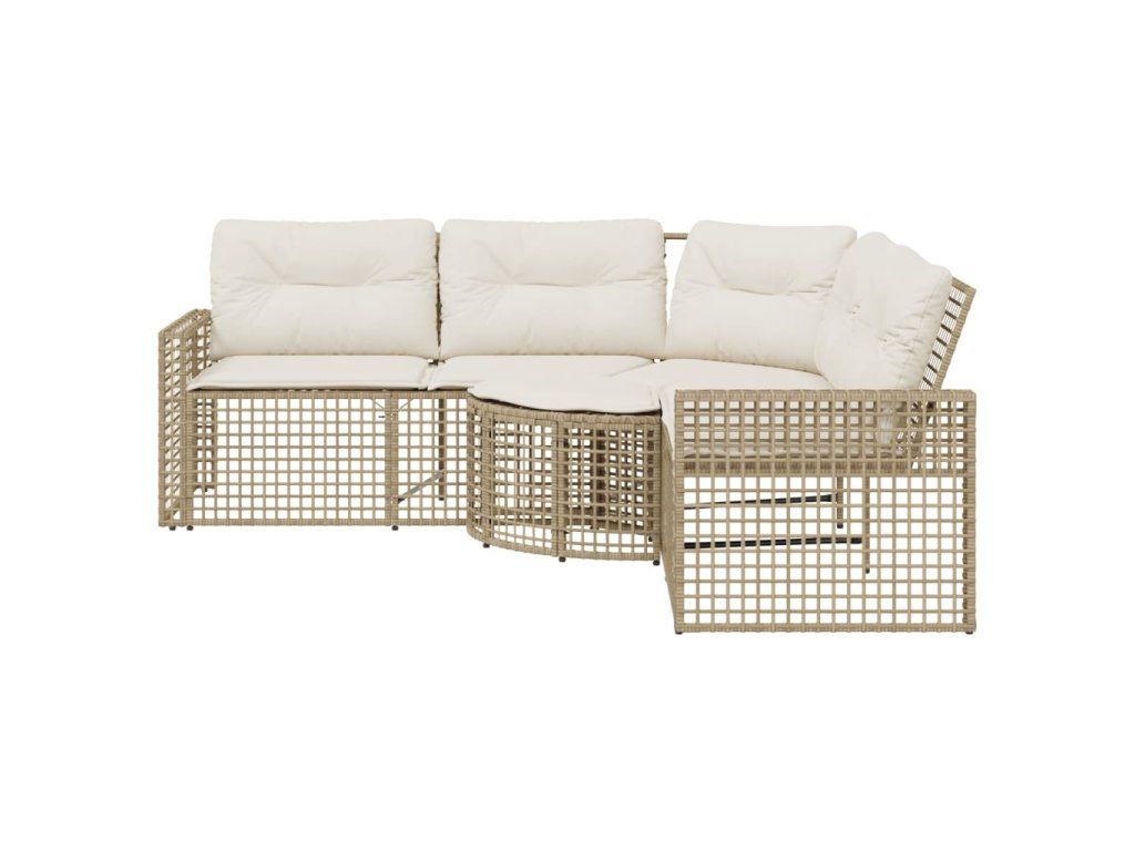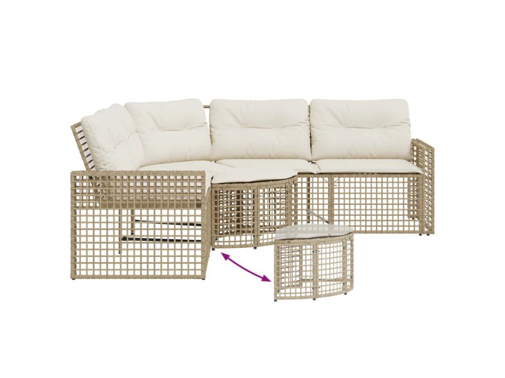 Multidom Záhradná pohovka so vankúšmi a podnožkou tvarL béžová polyratan