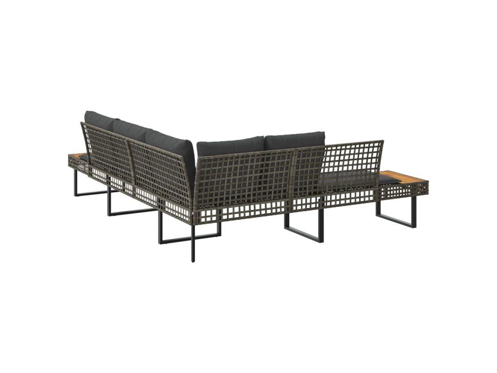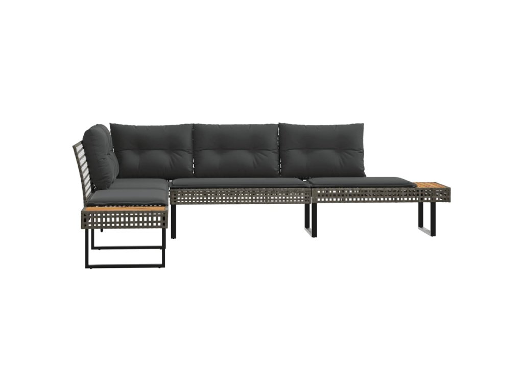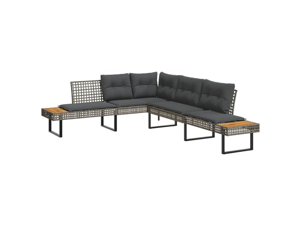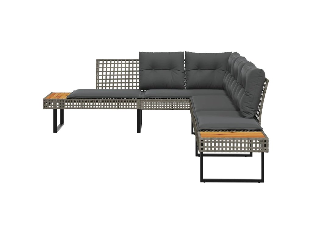 Multidom Záhradná pohovka so vankúšmi tvar L sivá polyratan a akácia