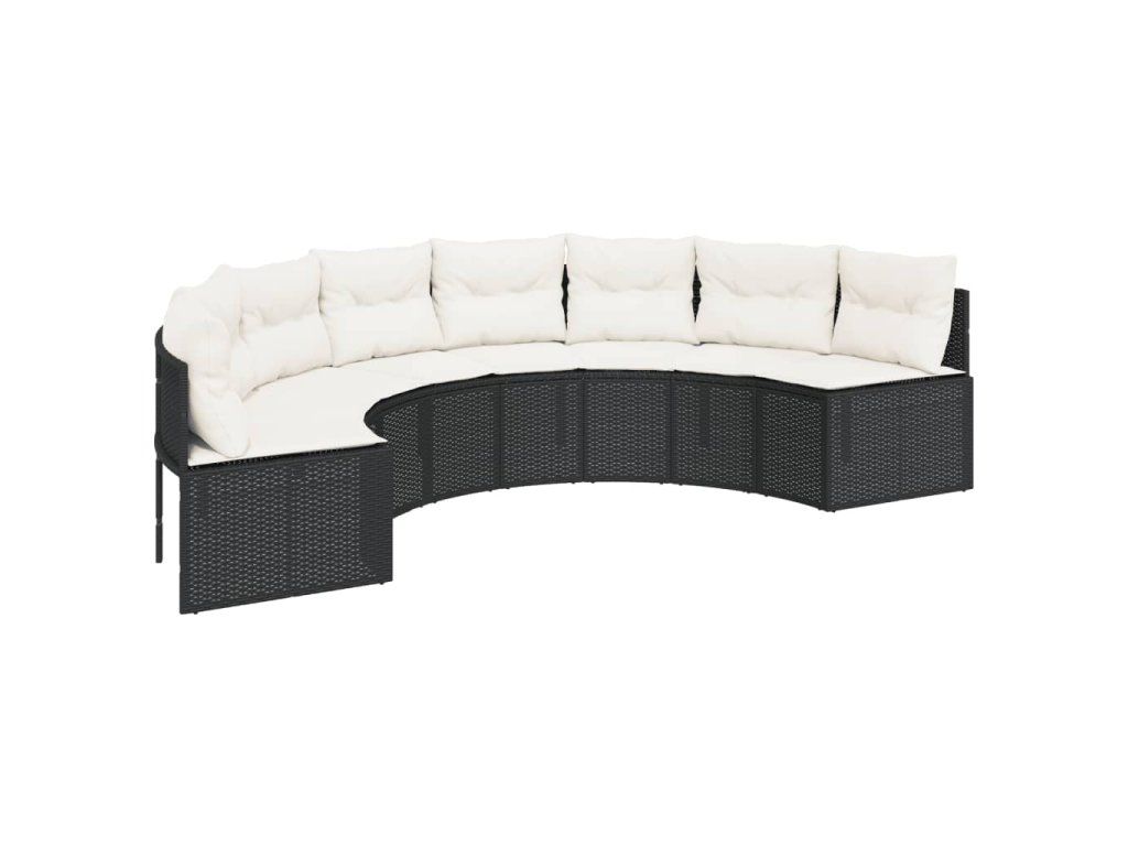Multidom Záhradná pohovka stolík a podložky polkruhová čierna polyratan
