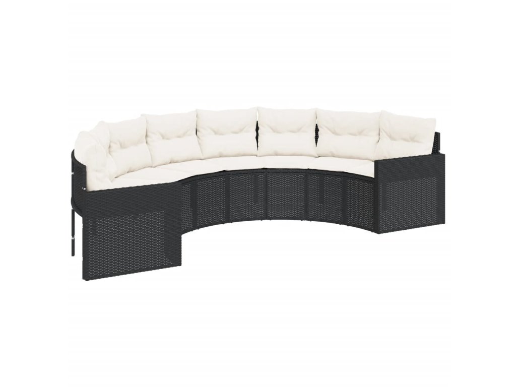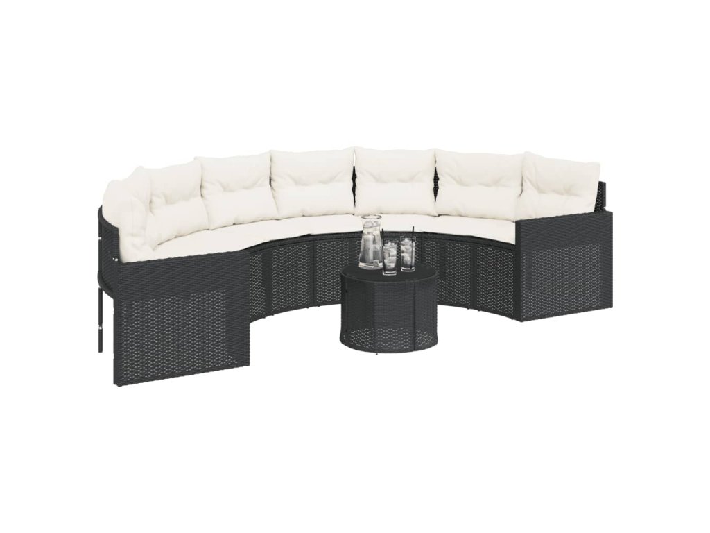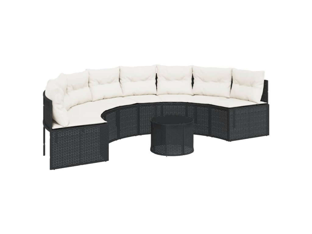 Multidom Záhradná pohovka stolík a podložky polkruhová čierna polyratan