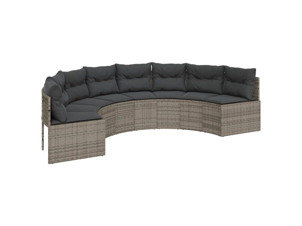 Multidom Záhradná pohovka stolík a podložky polkruhová sivá polyratan