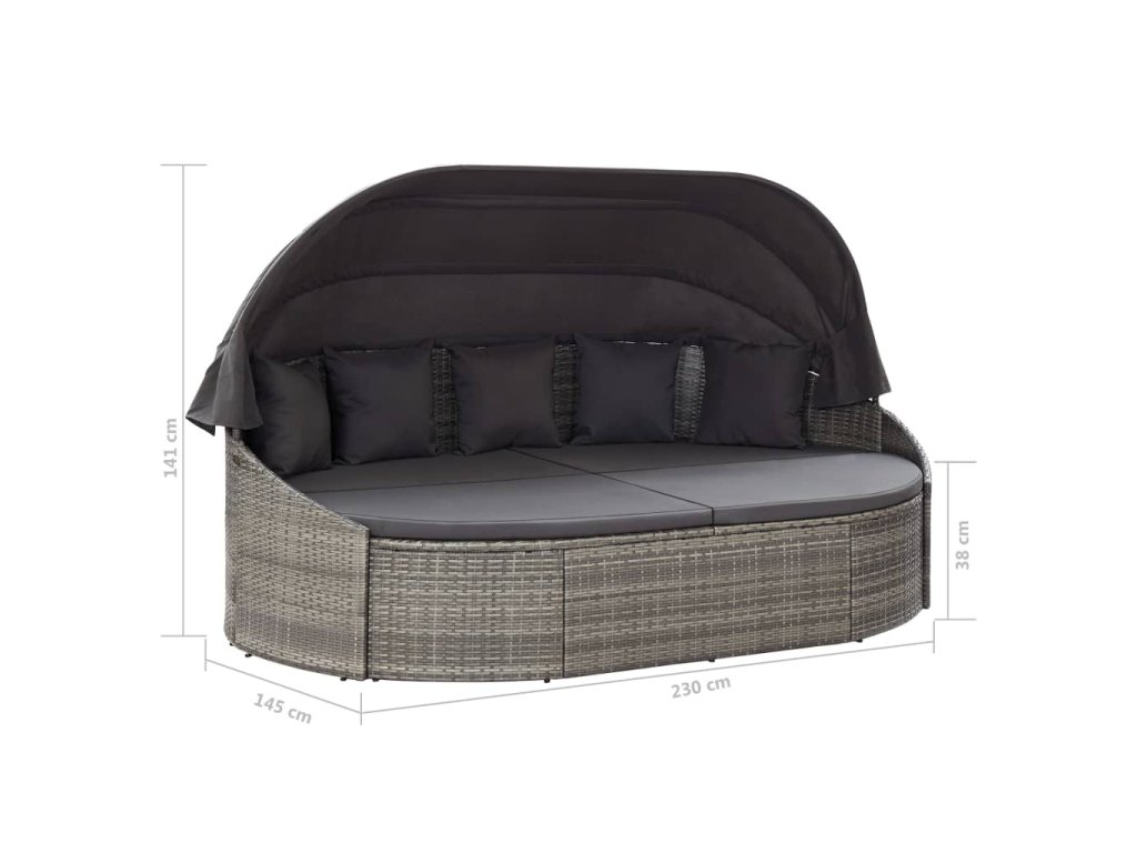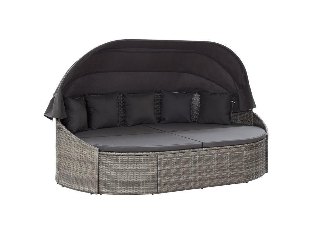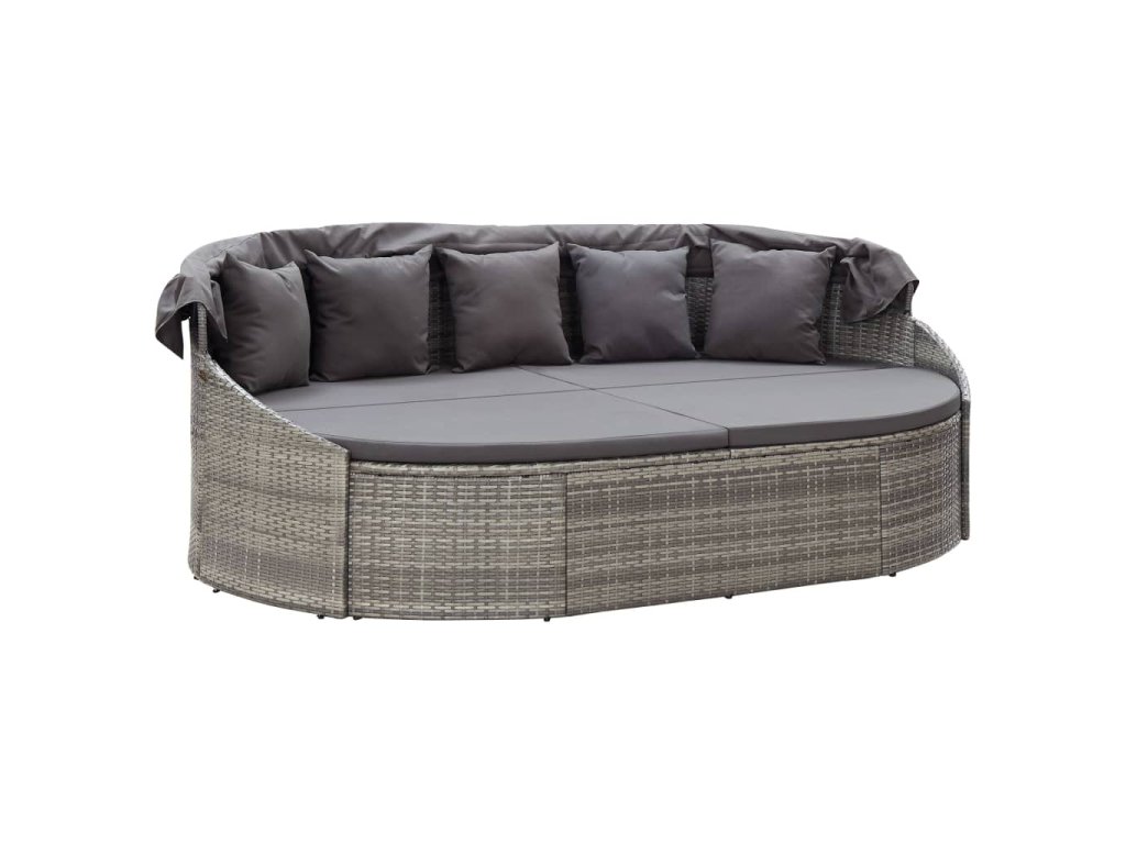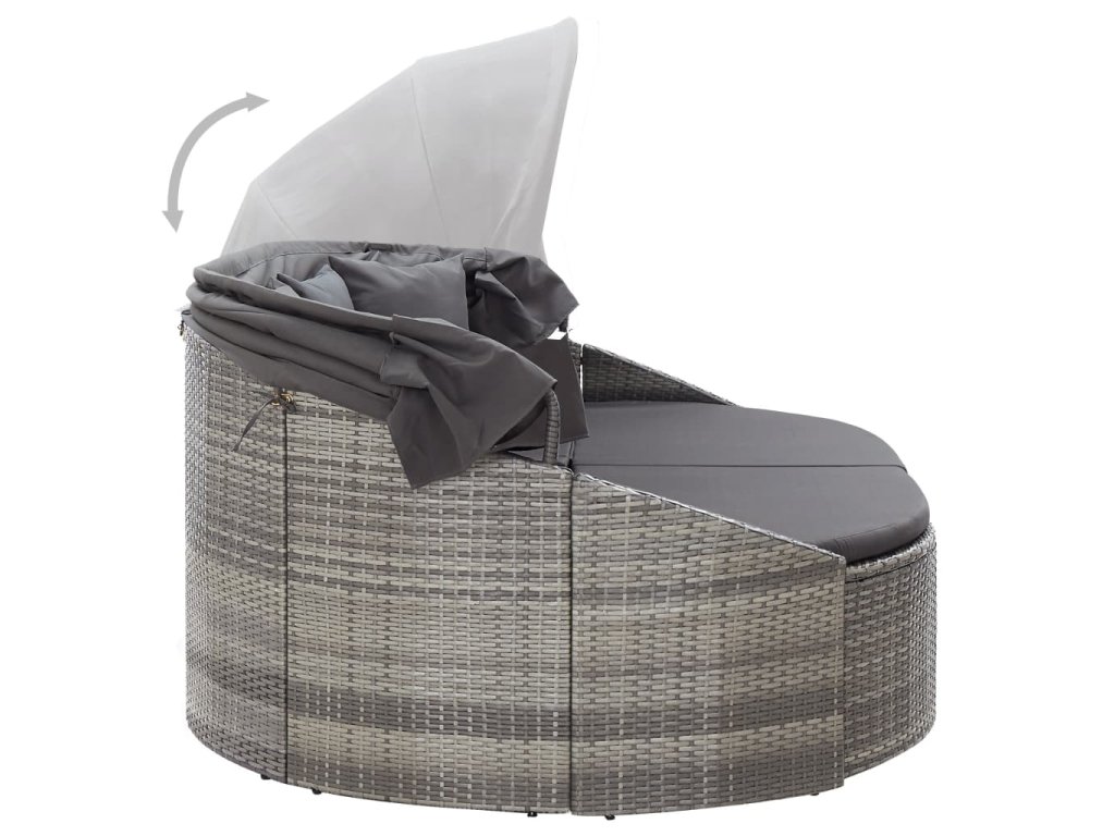 Multidom Záhradná posteľ s baldachýnom, polyratan, sivá