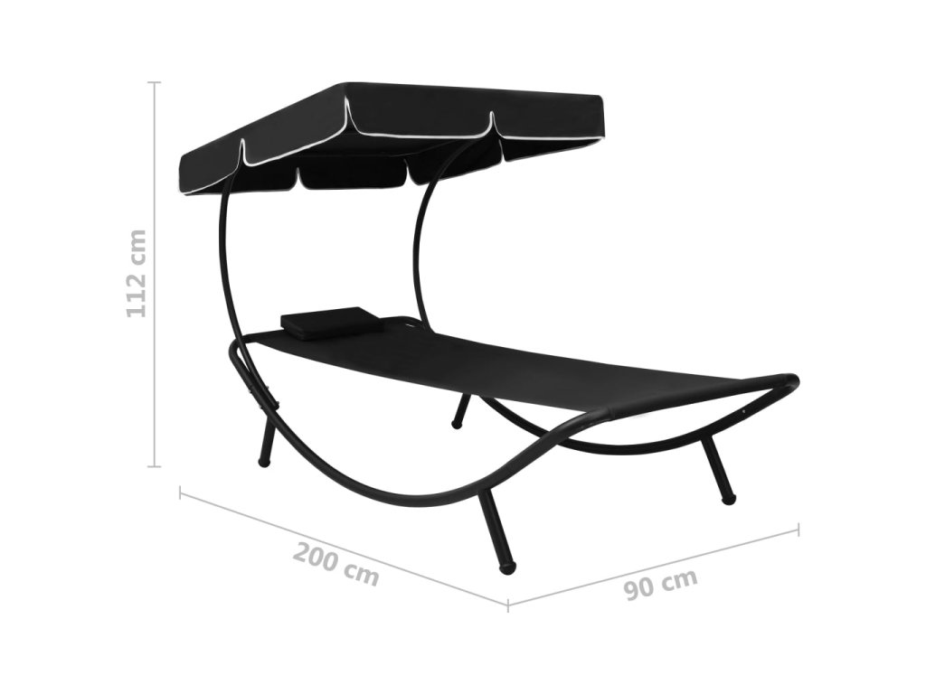 Multidom Záhradná posteľ s baldachýnom a vankúšom čierna