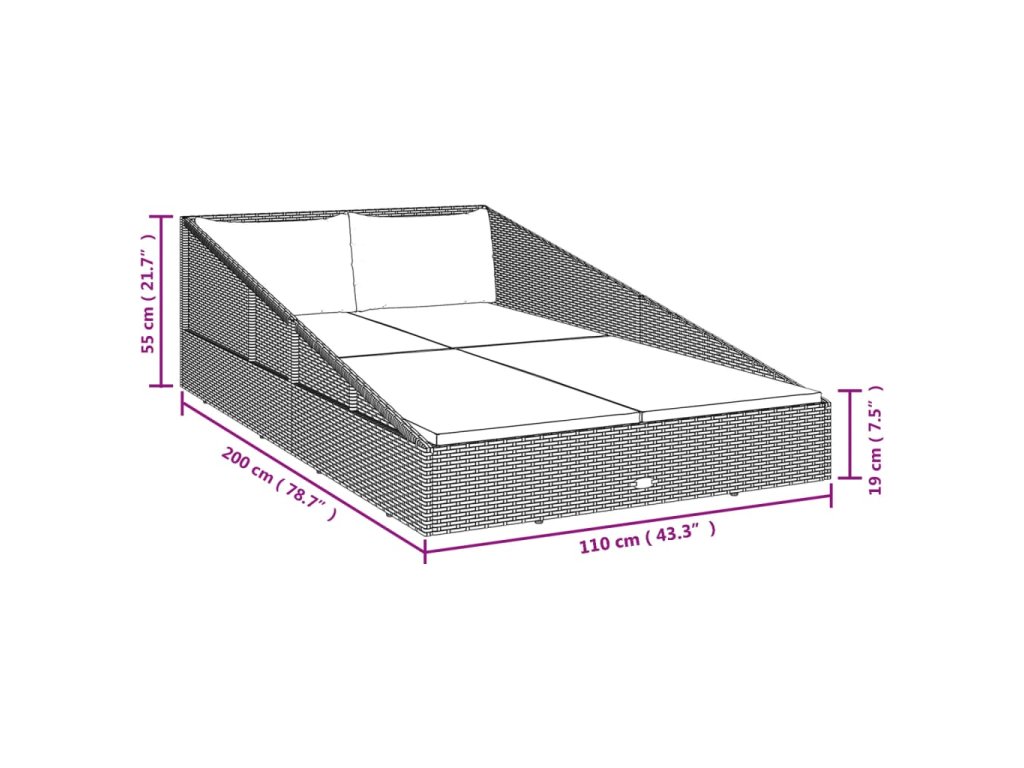 Posteľ je vyrobená z vodeodolného PE ratanu, ktorý je aj odolný voči vplyvom počasia, dobre sa čistí, je odolná a vhodná na každodenné vonkajšie použitie. Ležadlo má rám z práškovej ocele, vďaka čomu je veľmi stabilné a odolné. Posteľ je doručená so 4 podsedákmi a 2 vankúšmi. Pohodlné, hrubé a mäkké sedáky sú vyrobené z polyesteru, ktorý odpudzuje vodu. Návliečky majú zips, takže sú odnímateľné a dajú sa oprať.
