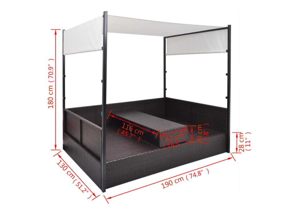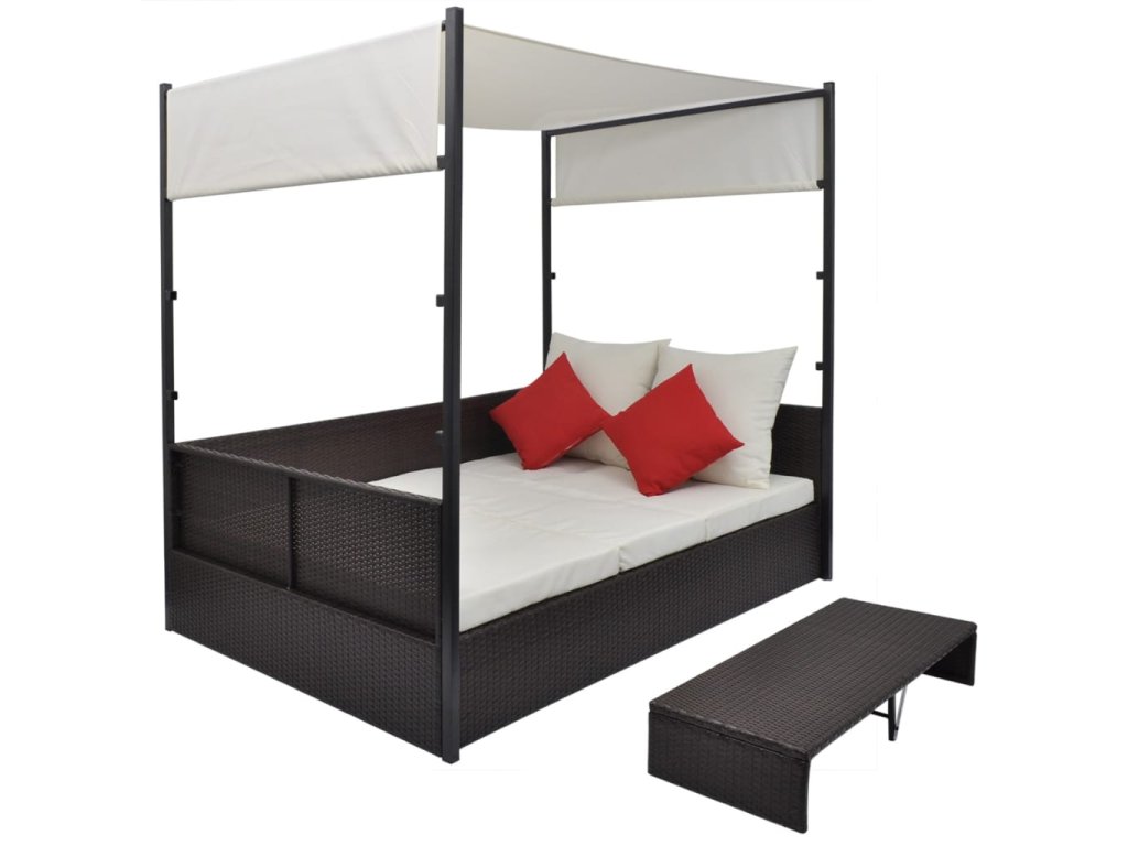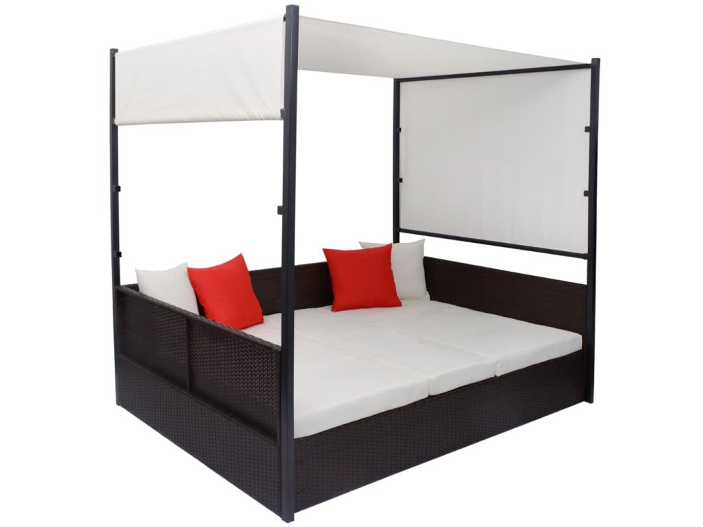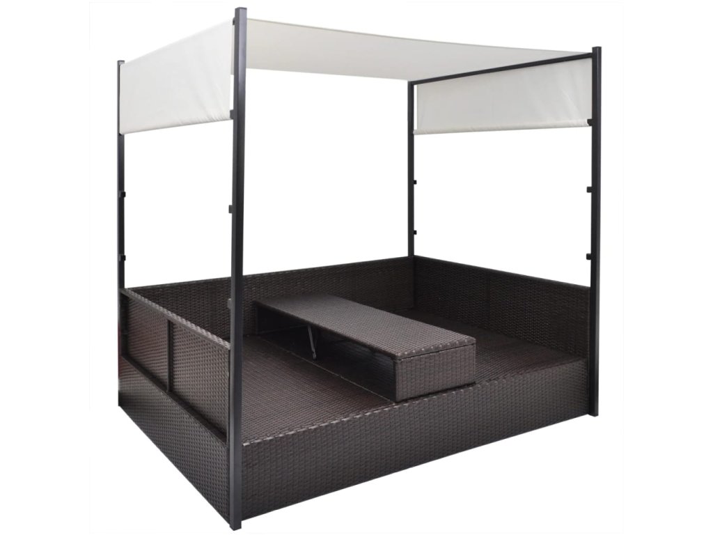 Multidom Záhradná posteľ so strieškou hnedá 190x130 cm polyratanová