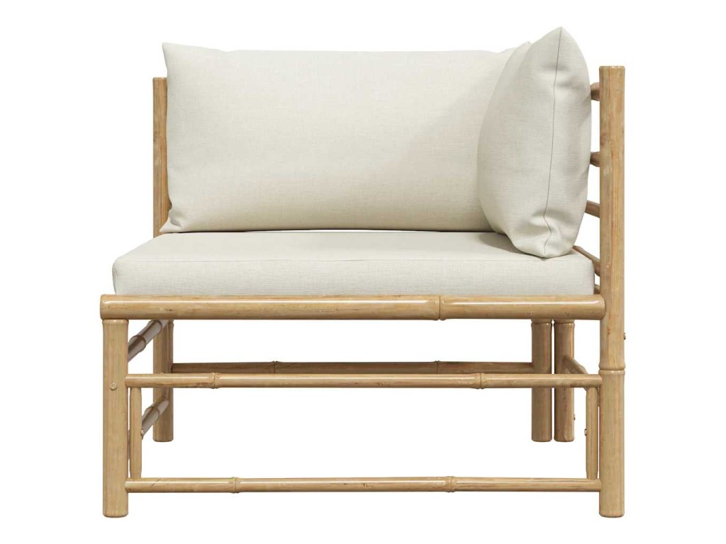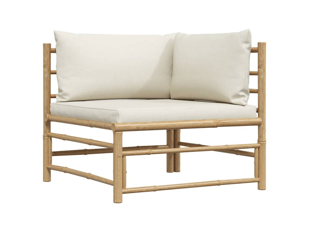 Multidom Záhradná rohová pohovka s krémovobielymi podložkami bambus