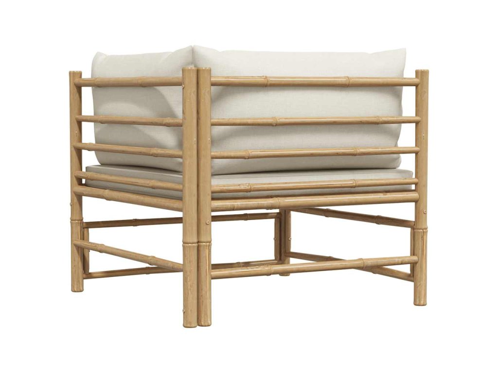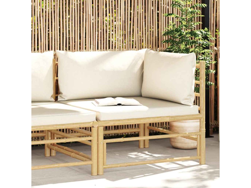 Táto vonkajšia pohovka je vyrobená z bambusu, takže je pevná a ľahko sa čistí. Silne polstrovaná sedačka a operadlá zvyšujú pohodlie počas vášho odpočinku. Vďaka ľahkej konštrukcii sa záhradná pohovka ľahko premiestňuje. Vďaka modulárnemu dizajnu ju môžete umiestniť v ľubovoľnom usporiadaní podľa vašich potrieb.