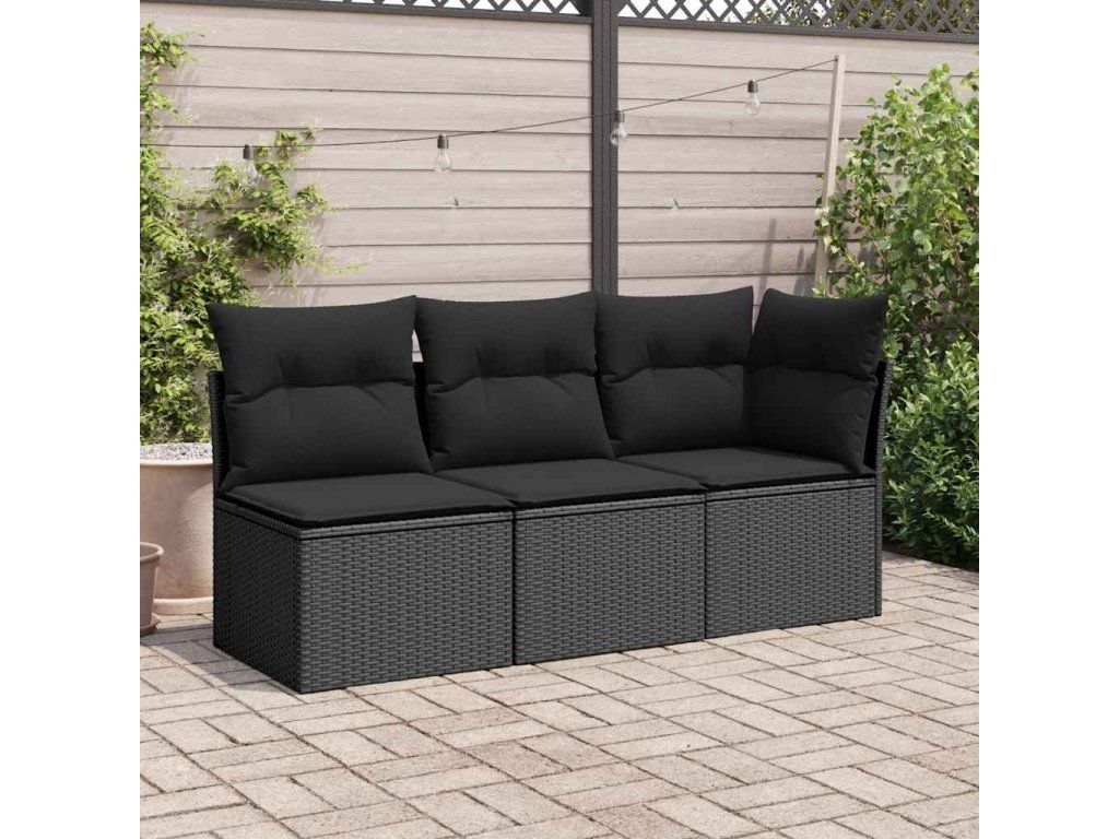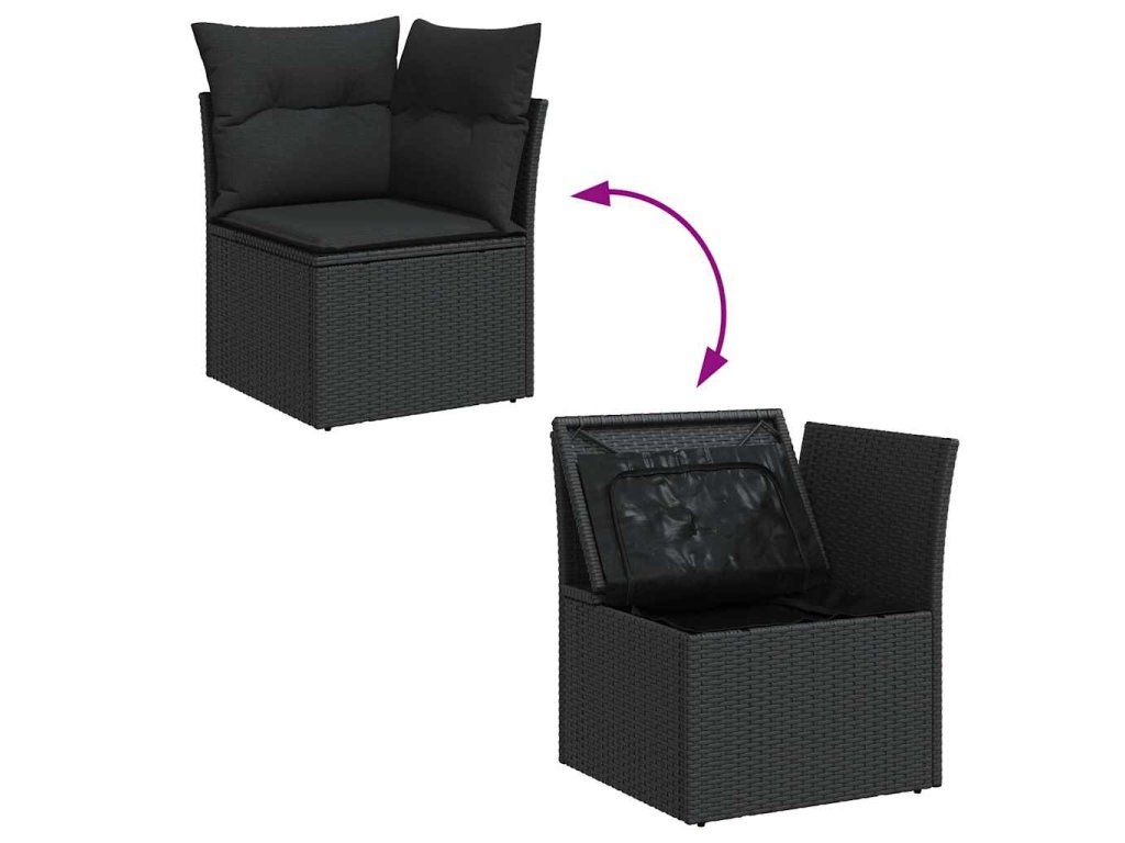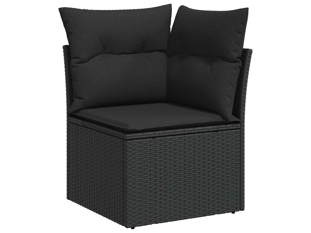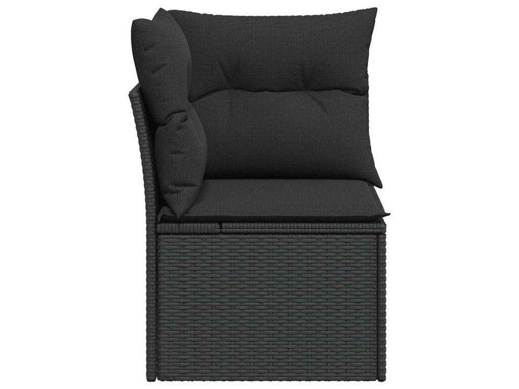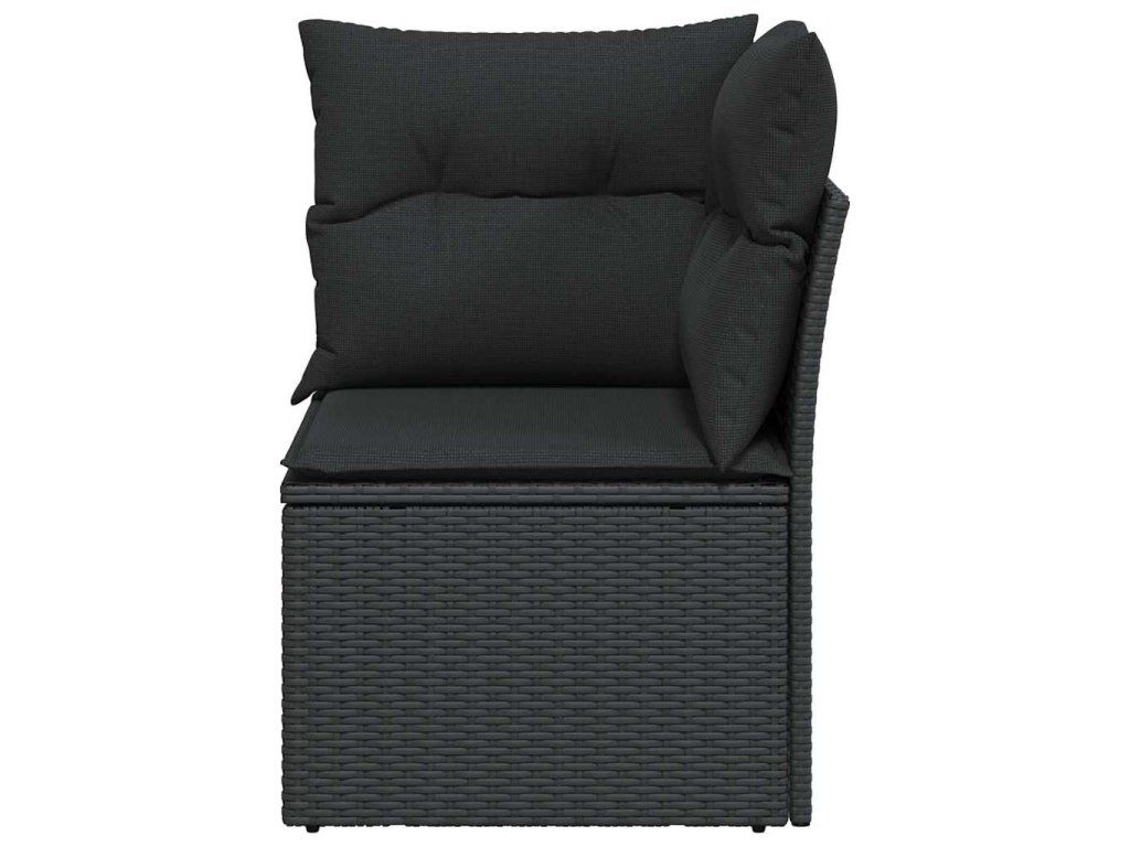 Multidom Záhradná rohová pohovka s vankúšmi, čierna, polyratan