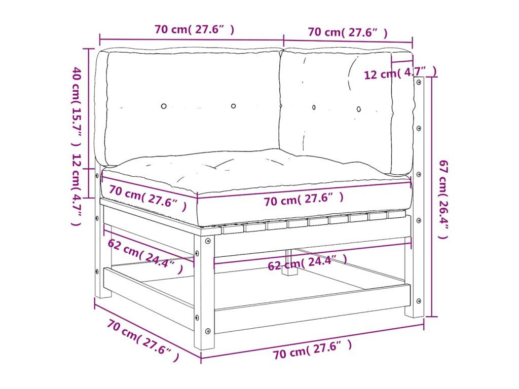 - Rozmery rohovej sedačky: 70 x 70 x 67 cm (Š x H x V)