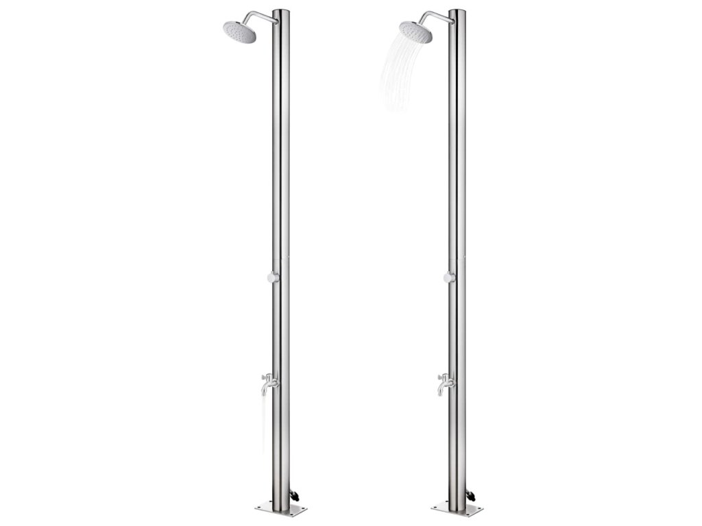 Táto vonkajšia sprcha je vyrobená z nehrdzavejúcej ocele, vďaka čomu je odolná voči poveternostným vplyvom. Sprchovací systém má hornú sprchu a batériu na umývanie nôh, aby vyhovovala vašim potrebám na záhrade, pri polievaní a rýchlom sprchovaní.
