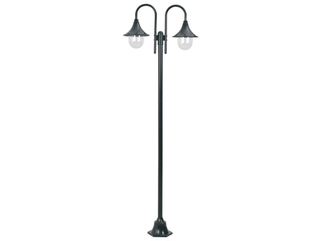Multidom Záhradná stĺpová lampa E27 220 cm hliník 2-lampáše tmavozelená