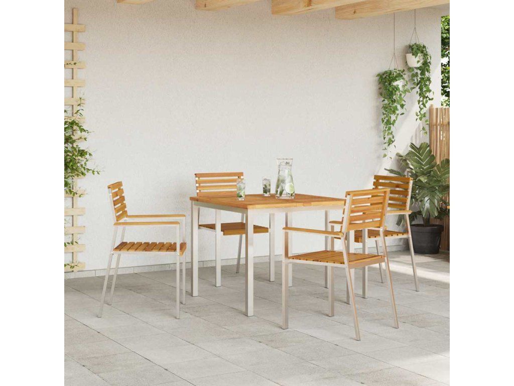 Táto moderná záhradná stolička dodá tvojmu vonkajšiemu priestoru trochu sofistikovanosti. S jednoduchým dizajnom a funkčnosťou sa skvele hodí do akéhokoľvek súčasného prostredia. Navrhnutá na vonkajšie použitie, obohatí tvoju záhradu alebo terasu svojimi čistými líniami. Je skvelým doplnkom na oddych alebo spoločenské stretnutia a vďaka prvkom z nehrdzavejúcej ocele je nielen vizuálne príťažlivá, ale aj funkčná.