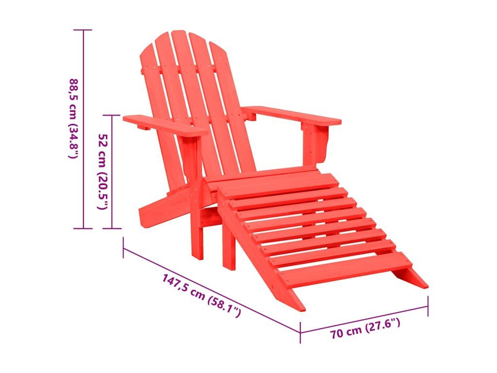 Multidom Záhradná stolička Adirondack s otomanom jedľový masív červená