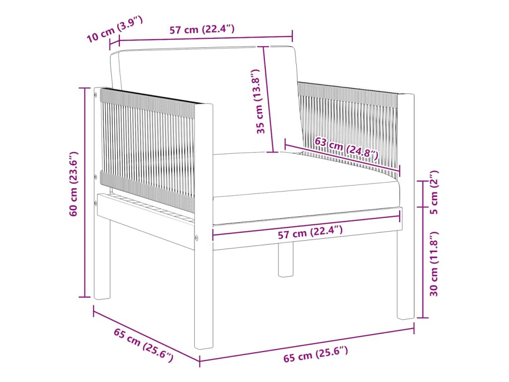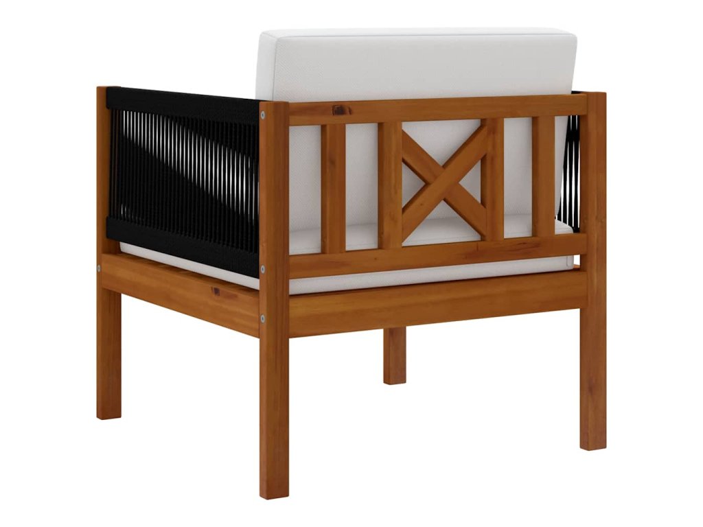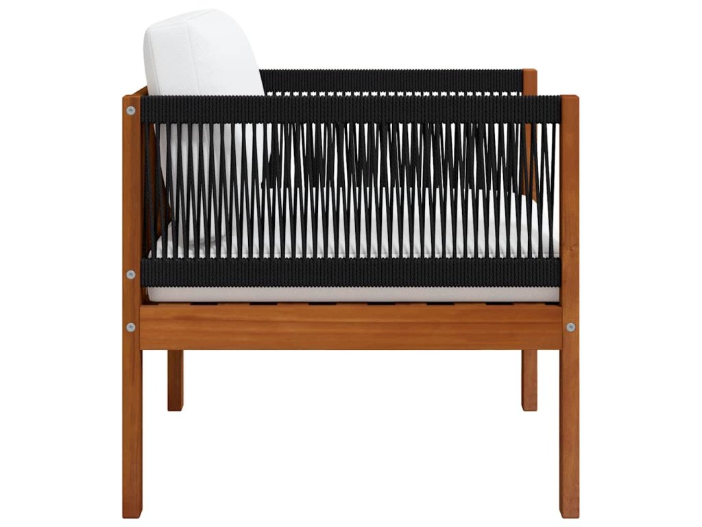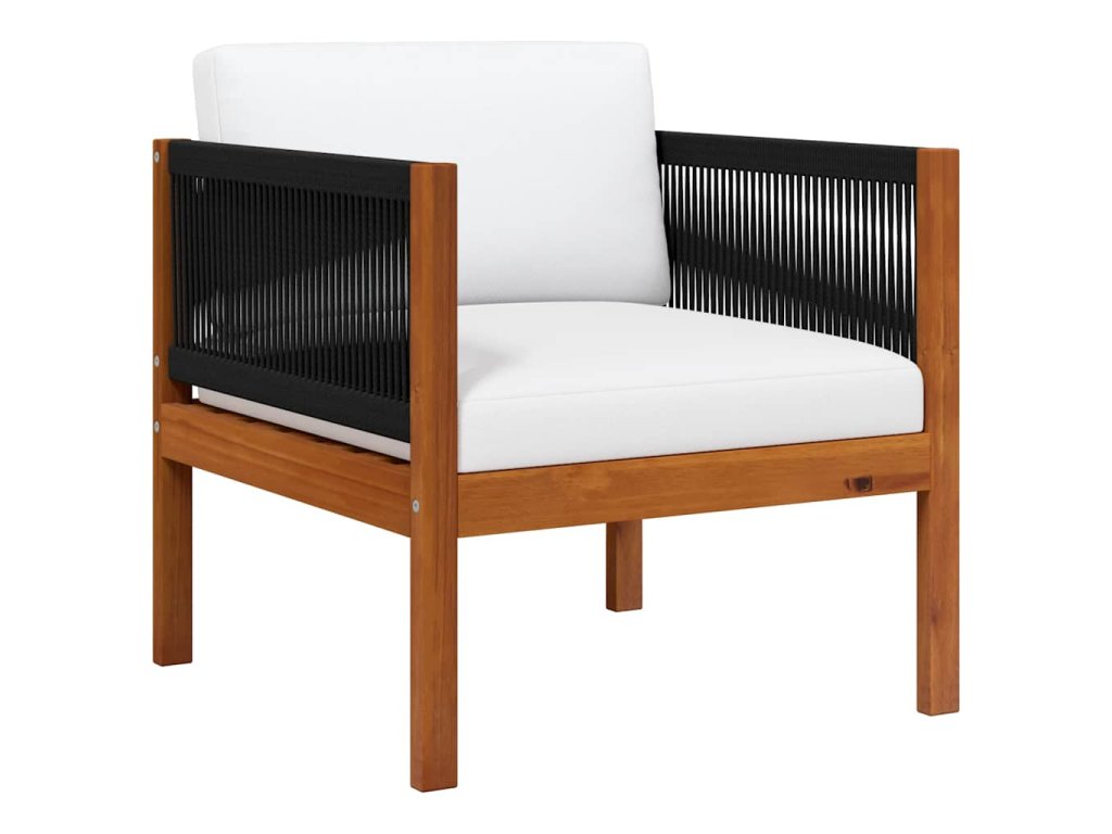 Stolička sa vyznačuje extrémnou odolnosťou vďaka pevnému materiálu z akáciového dreva. Preto je vhodná na vonkajšie použitie. Vonkajšie posedenie s výrazným dizajnom s použitím lana priťahuje pozornosť. Navyše, vonkajšia stolička je ľahká a jednoducho sa presúva. Hrubšie polstrované vankúše zabezpečia vaše pohodlie pri sedení.