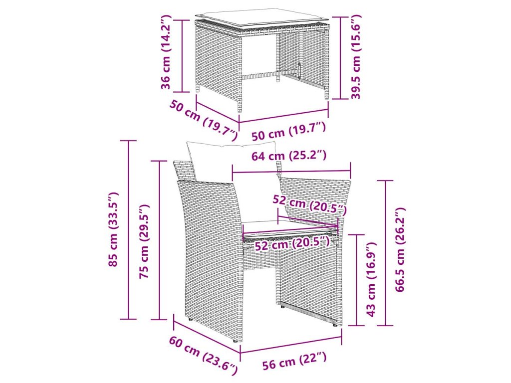 - Rozmery: 50 x 50 x 36 cm (Š x H x V)