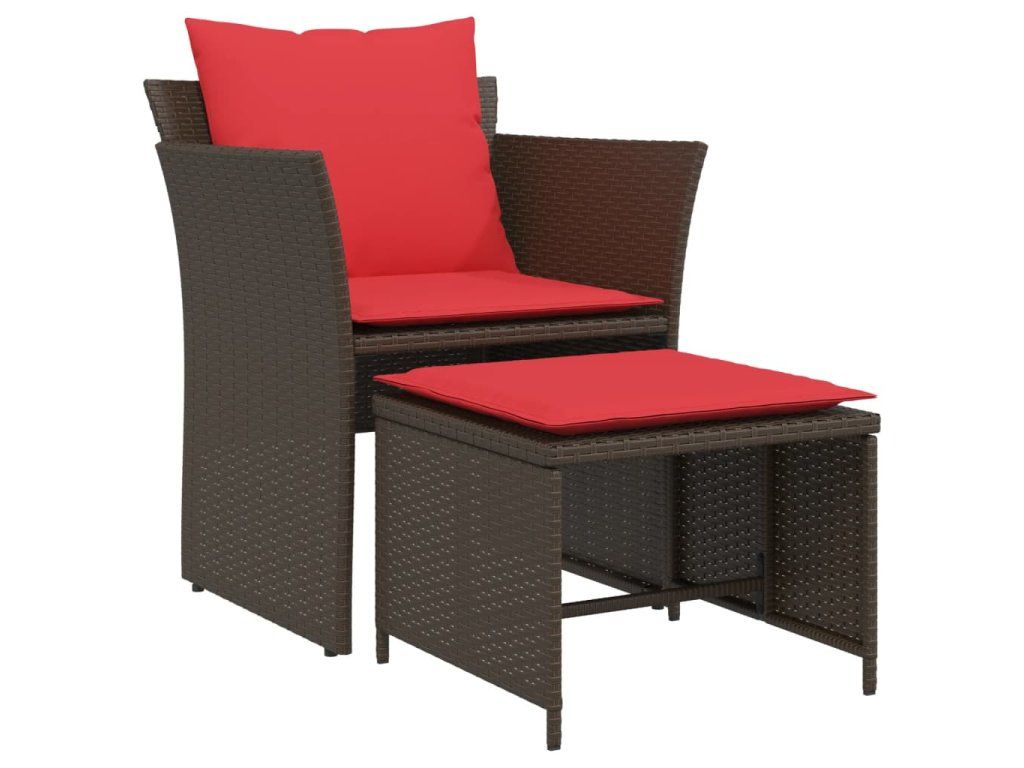 Multidom Záhradná stolička s taburetkou hnedá polyratan