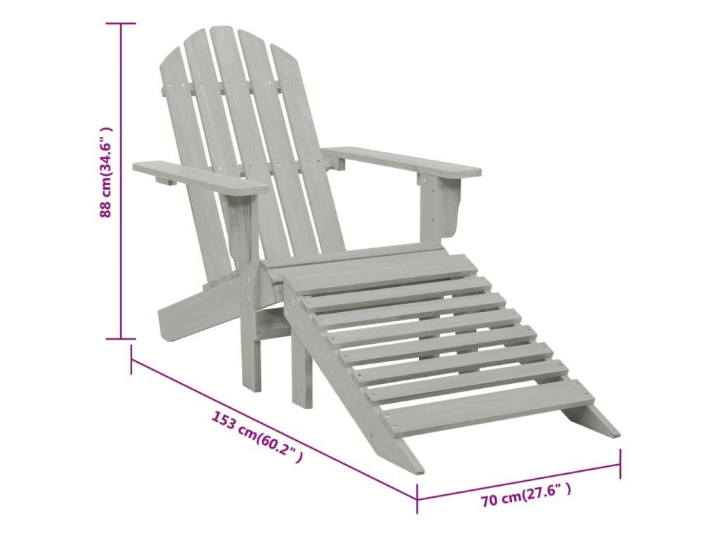 Multidom Záhradná stolička s taburetkou sivá drevená