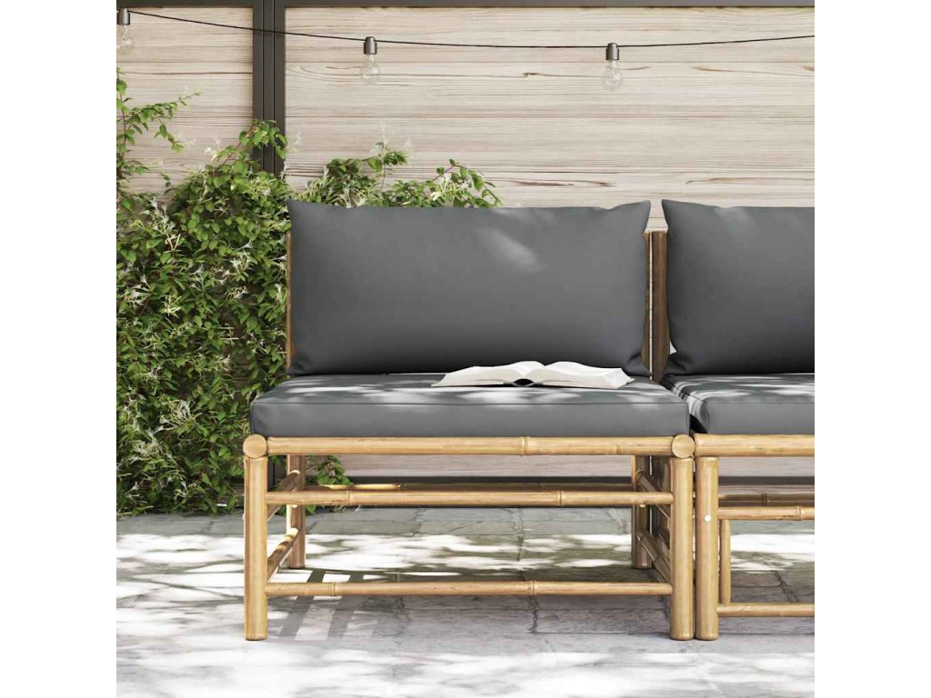 Multidom Záhradná stredová pohovka s tmavosivými podložkami bambus
