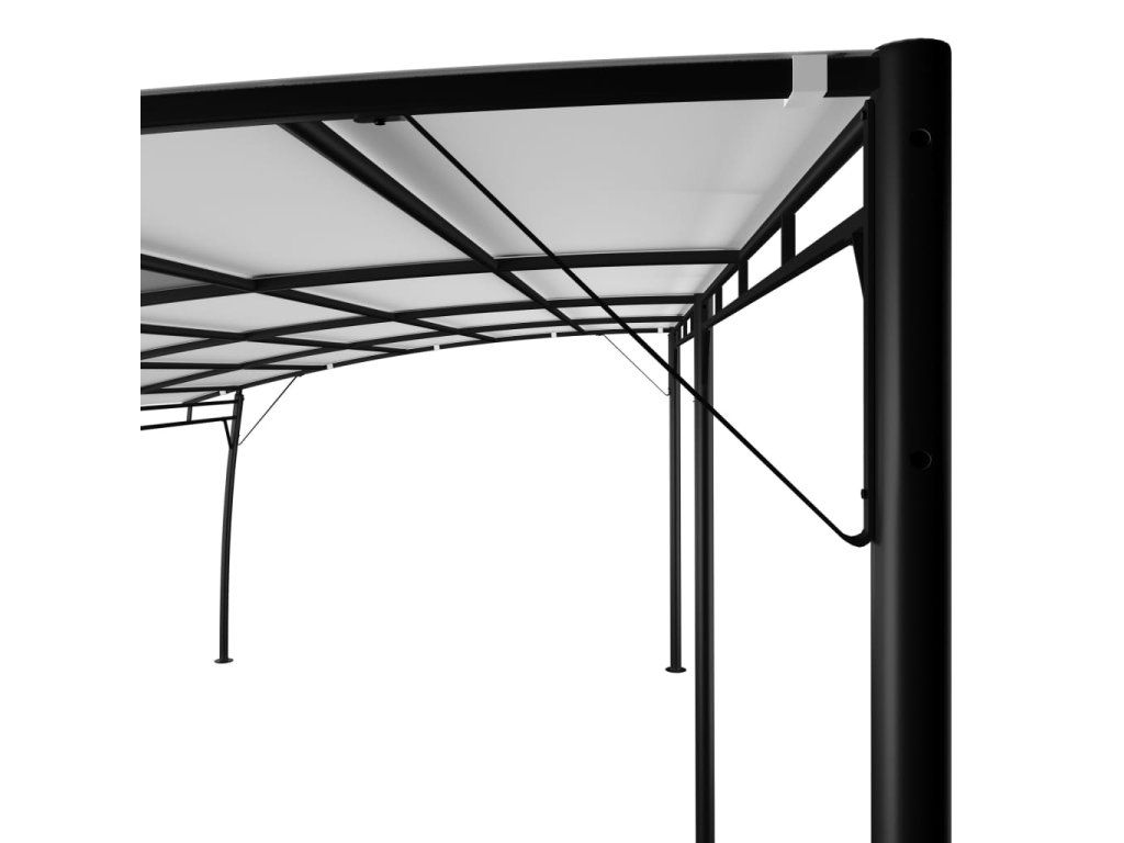 Vďaka robustnej kovovej konštrukcii a oceli s práškovou povrchovou úpravou je rám trvácny a stabilný. Látková strieška poskytuje ochranu pred horúcim slnkom, a tak vám umožní vychutnávať si pobyt na čerstvom vzduchu v príjemnom tieni. Tento elegantný a praktický prístrešok sa dá jednoducho zmontovať.