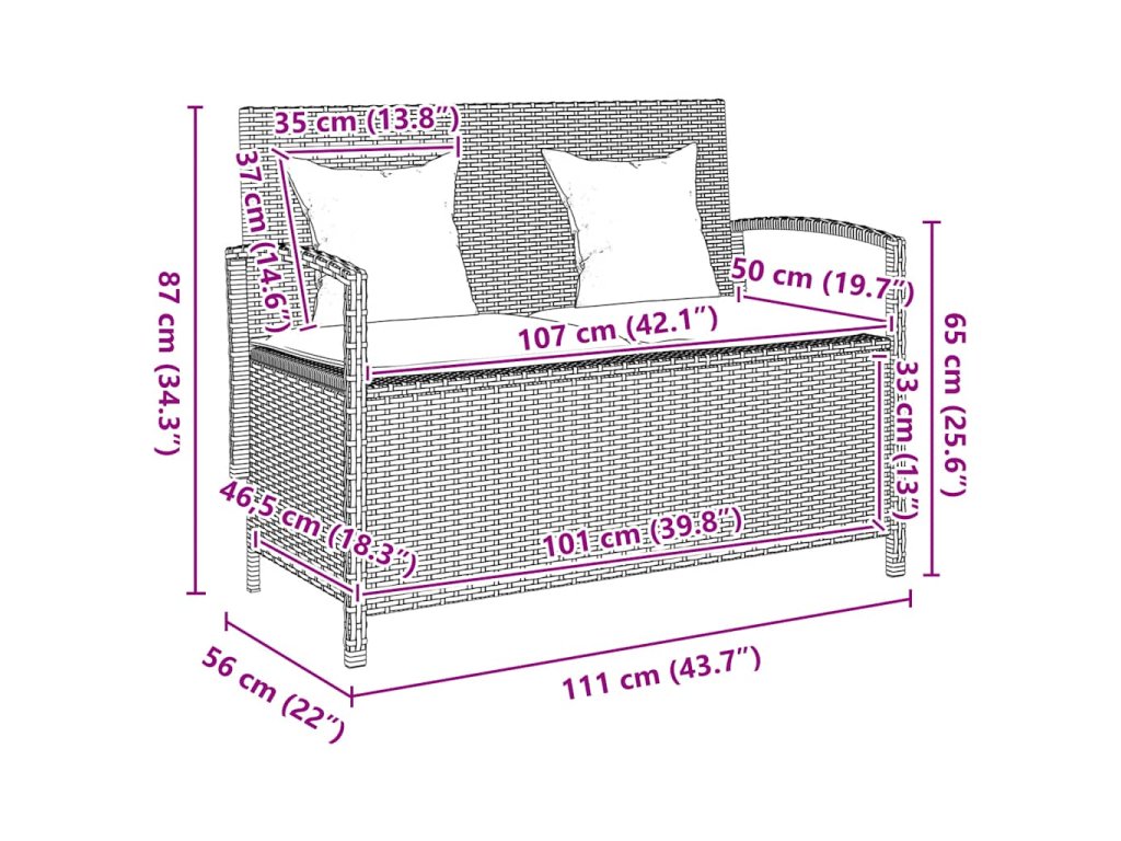 Táto záhradná odkladacia lavica ponúka nielen vonkajšie sedenie, ale je tiež ideálna na uloženie vankúšov na vonkajší nábytok, záhradkárskych potrieb, uterákov do bazéna a iných predmetov, ktoré sú ľahko dostupné.