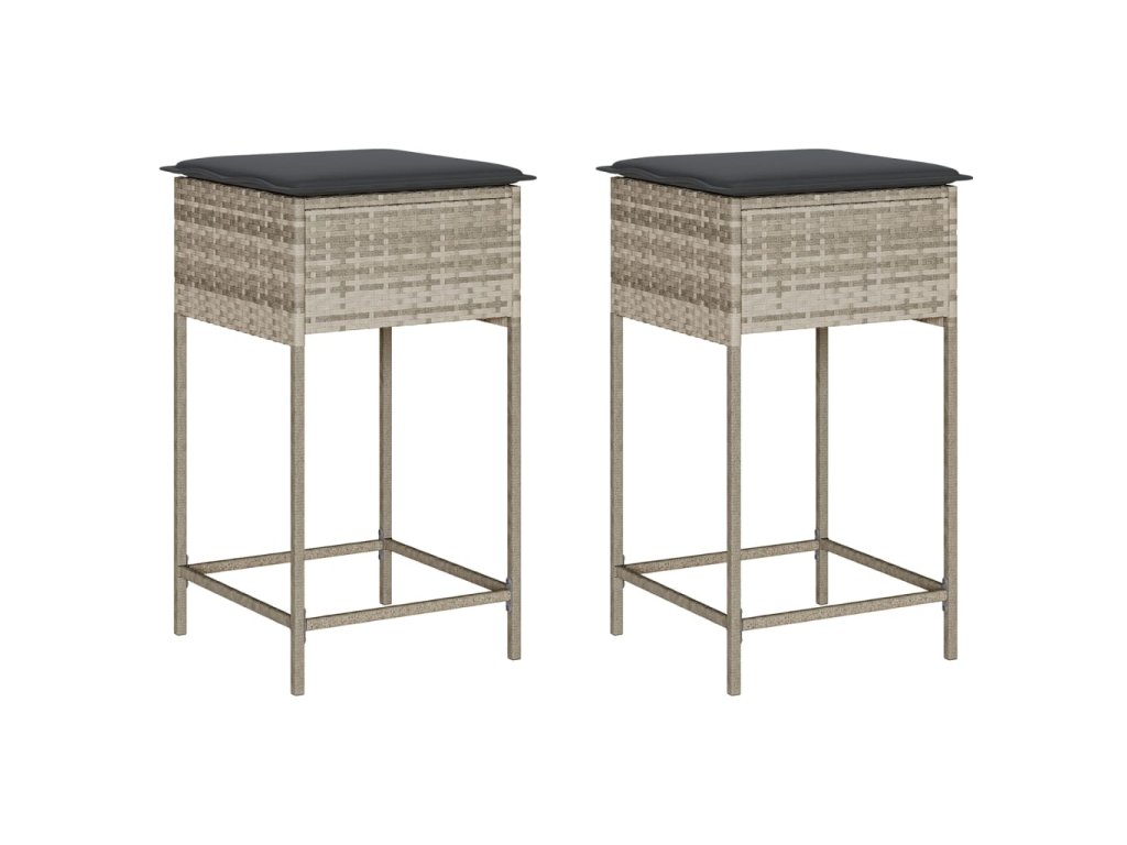 Multidom Záhradné barové stoličky s vankúšmi 2 ks bledosivé polyratan