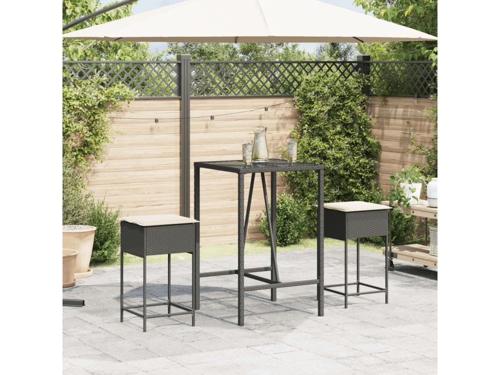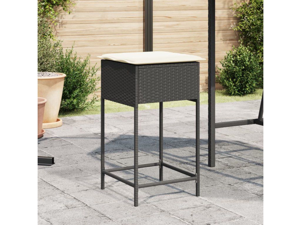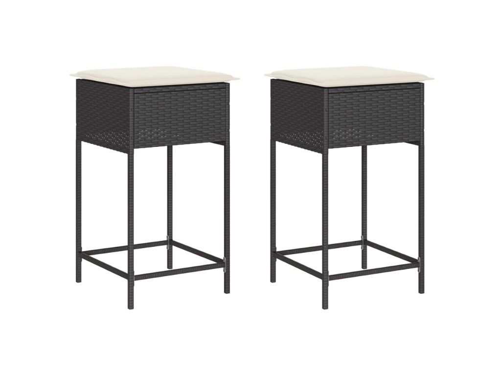 Multidom Záhradné barové stoličky s vankúšmi 2 ks čierne polyratan