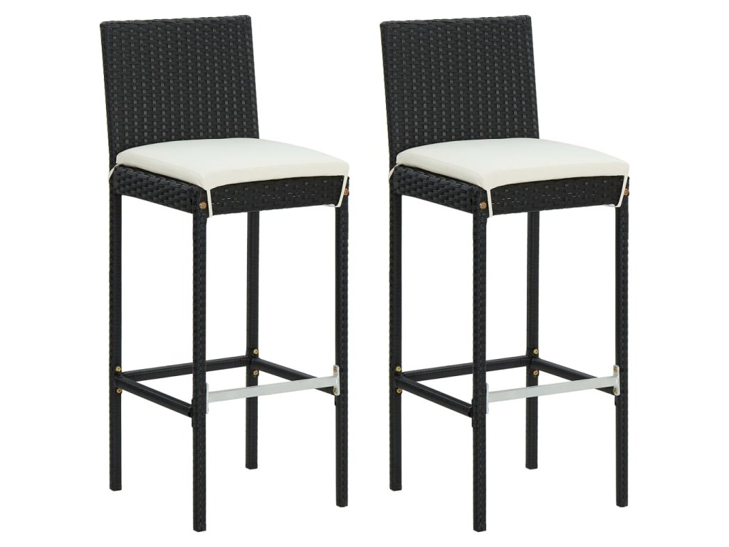 Multidom Záhradné barové stoličky s vankúšmi 2 ks čierne polyratan