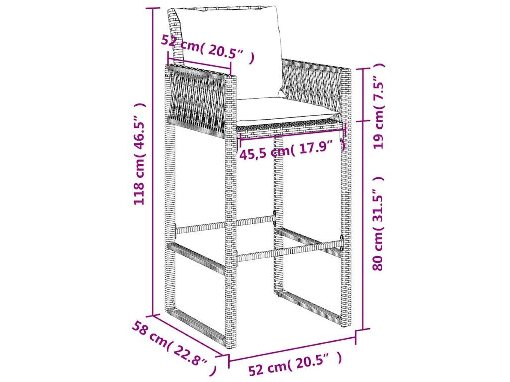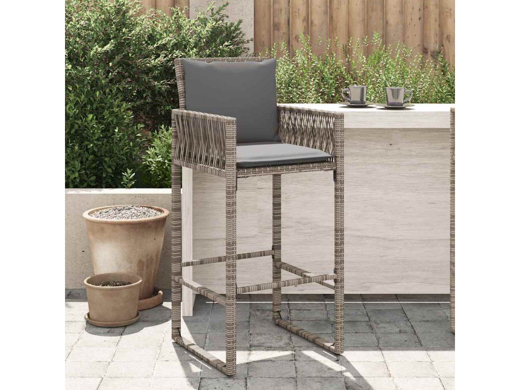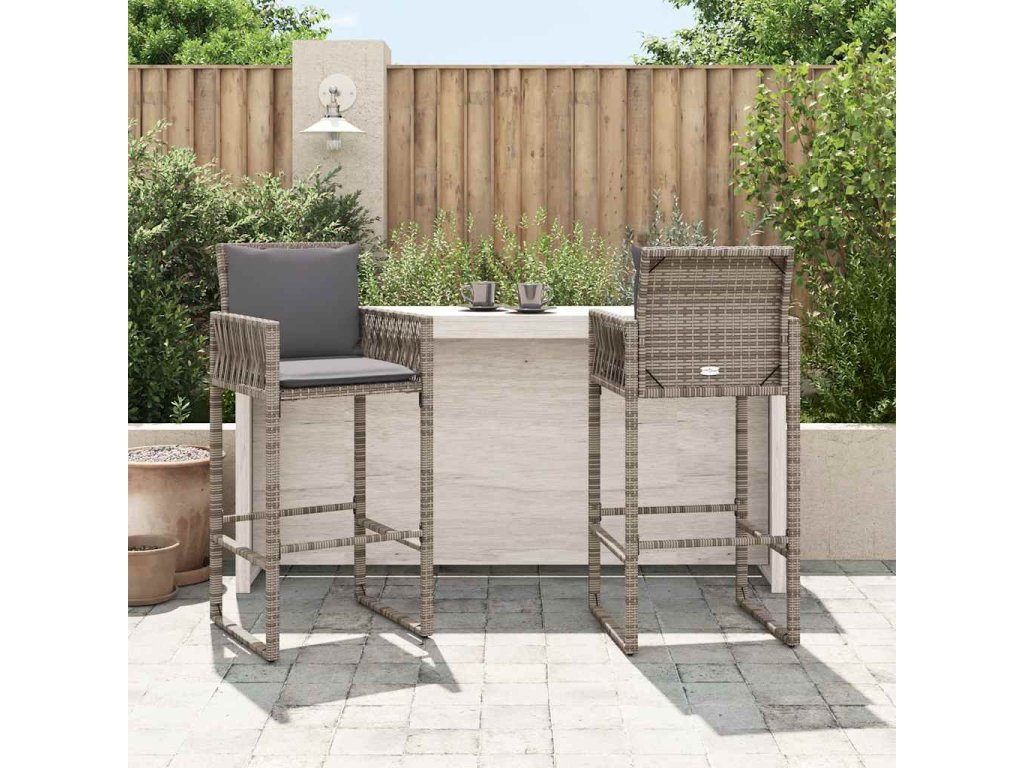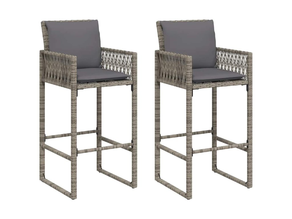 Multidom Záhradné barové stoličky s vankúšmi 2 ks sivé polyratan