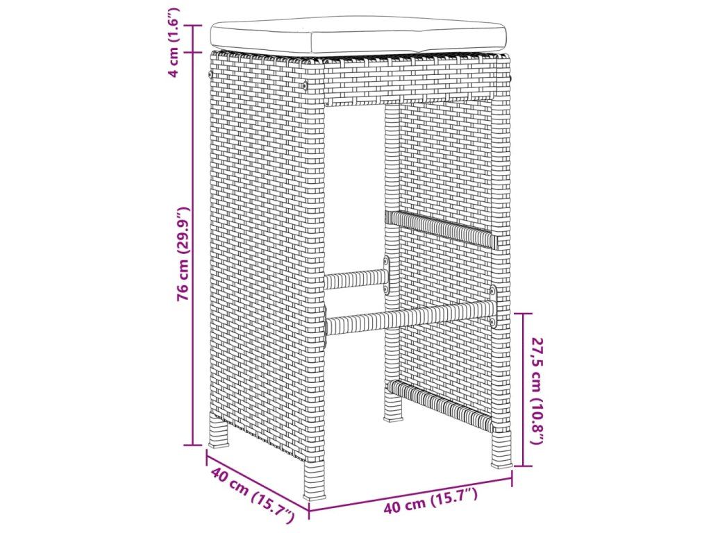 Multidom Záhradné barové stoličky s vankúšmi 4 ks čierne polyratan