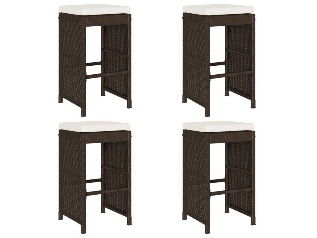 Multidom Záhradné barové stoličky s vankúšmi 4 ks hnedé polyratan