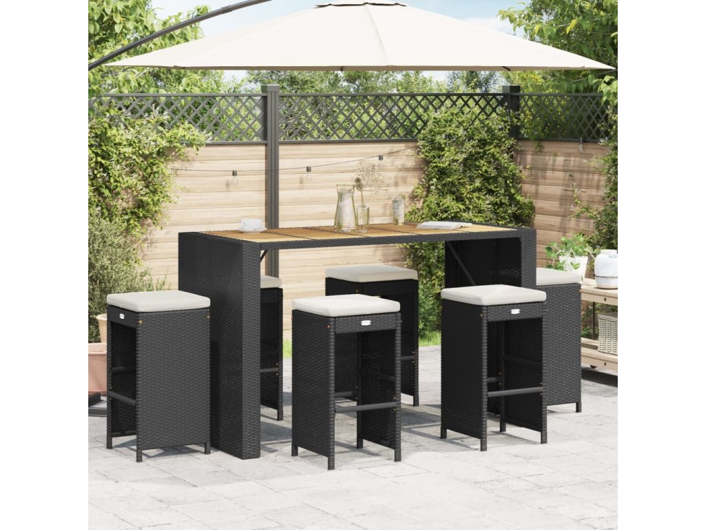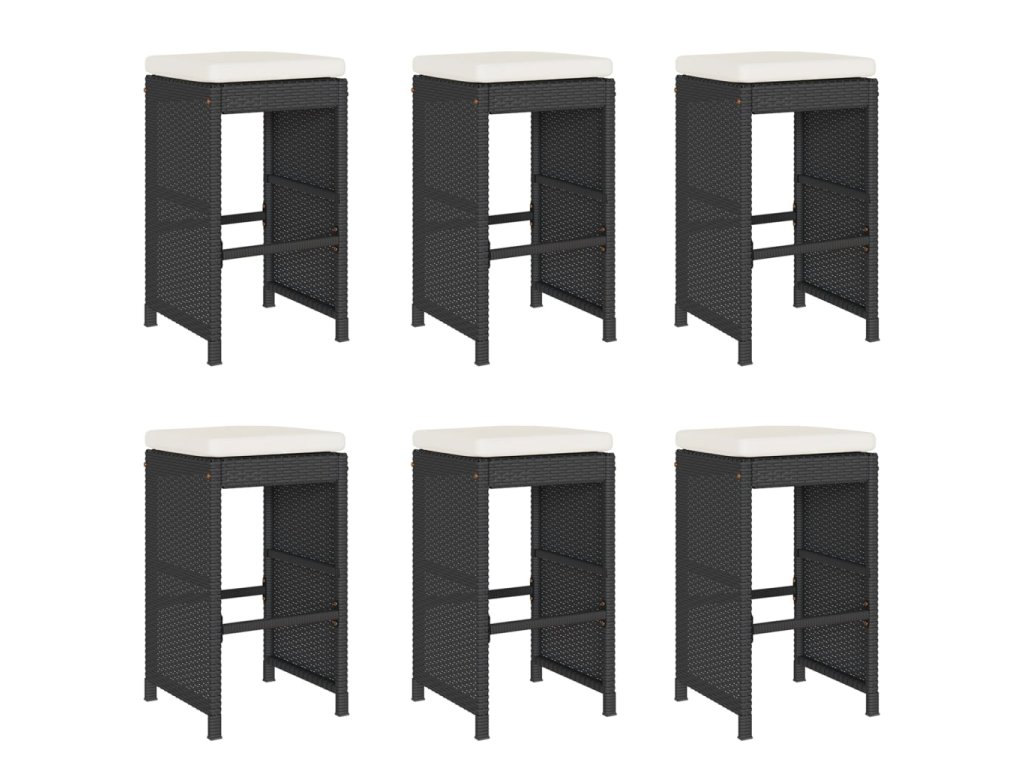 Multidom Záhradné barové stoličky s vankúšmi 6 ks čierne polyratan