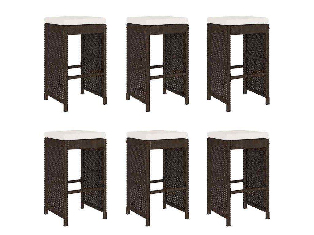 Multidom Záhradné barové stoličky s vankúšmi 6 ks hnedé polyratan